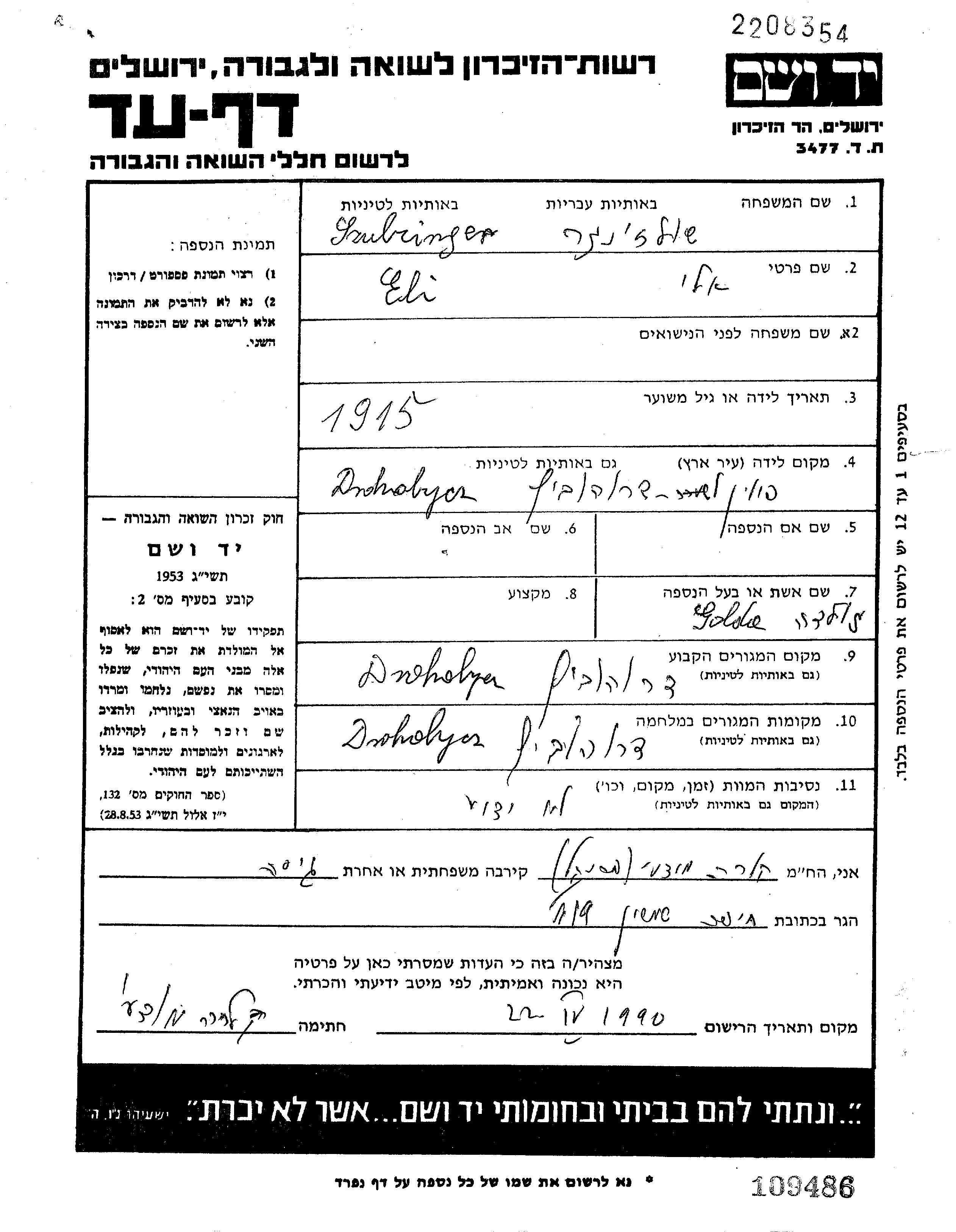 Eli wurde in der Schoah ermordet. Todesort: Drohobycz, Polen.