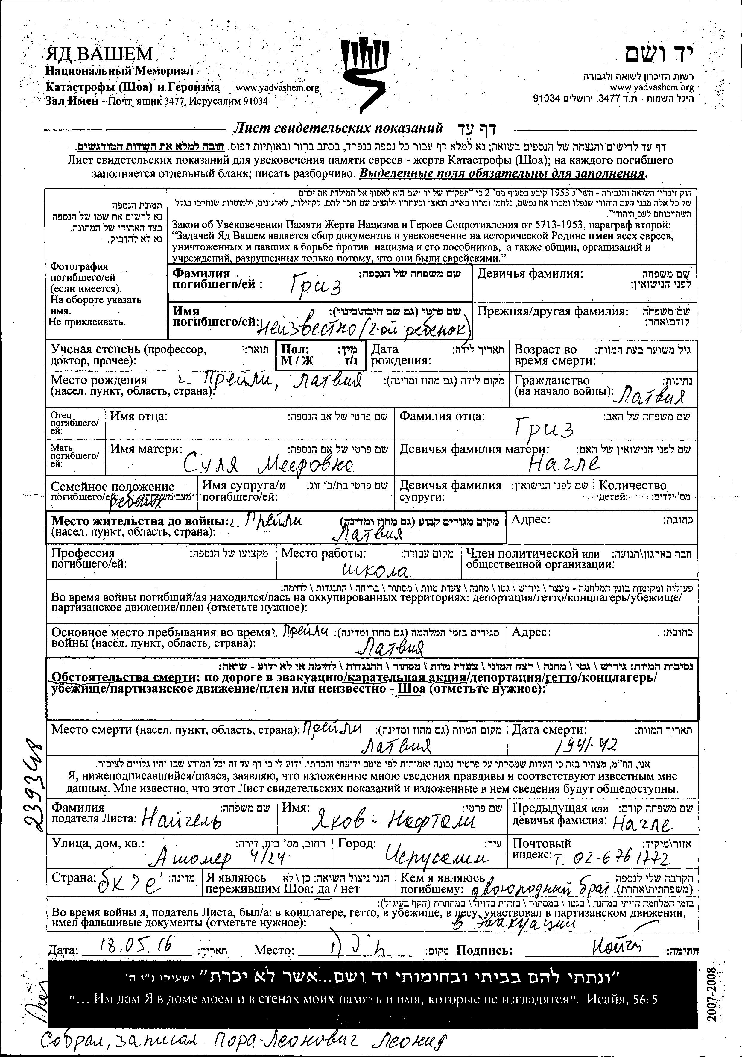 Er/sie wurde in der Schoah ermordet. Todesort: Preili, Lettland im Jahr 1941.