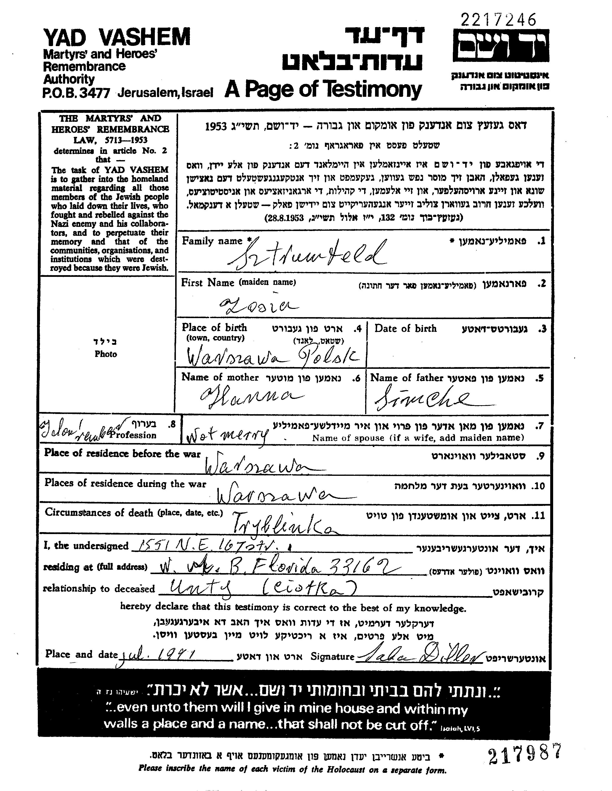Sztrumfeld Zosia Warszawa, Polen Gedenkblatt