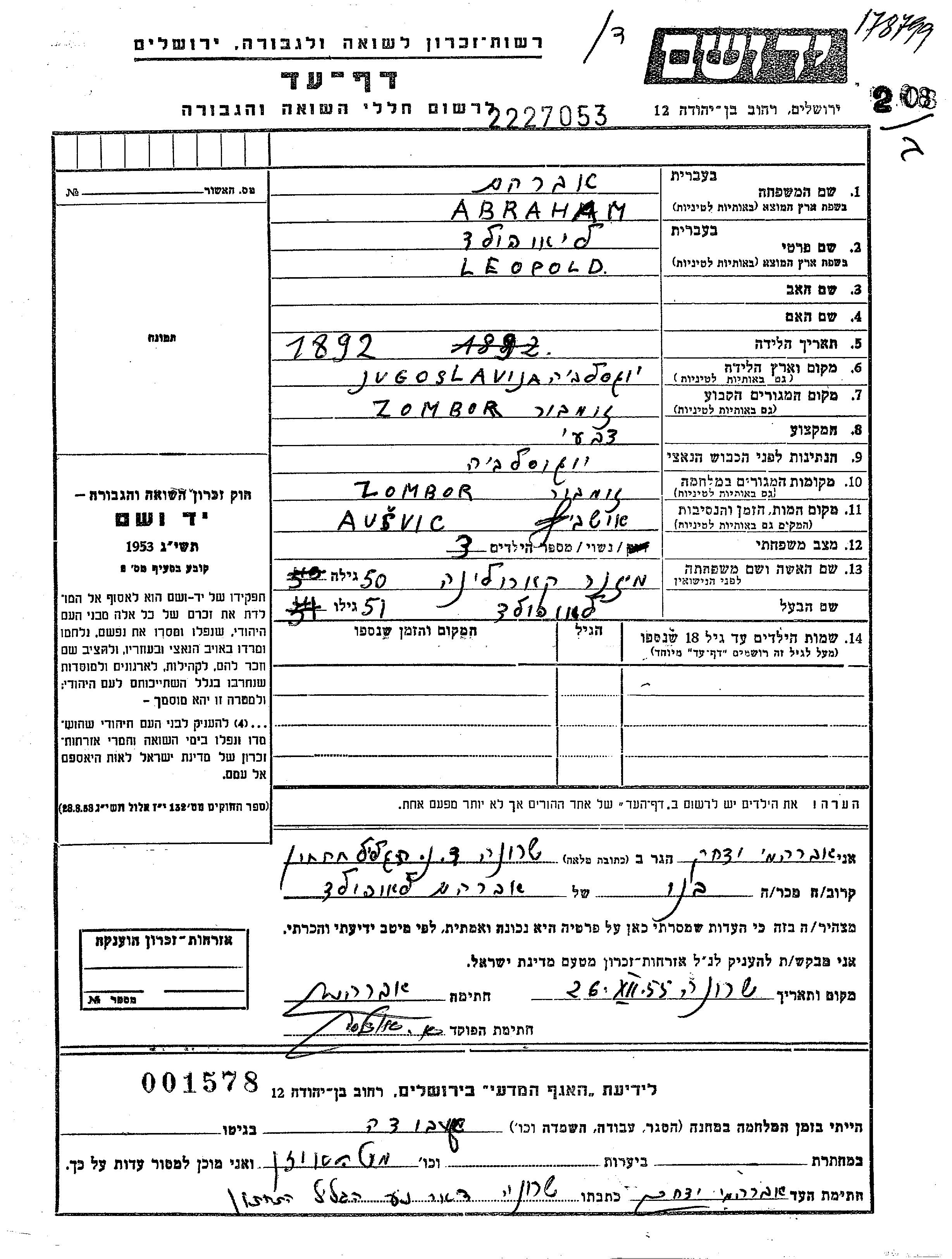 Leopold Abraham wurde im Jahr 1892 in Jugoslawien geboren. Er war Anstreicher/-in und mit Karolina Verheiratet. Vor dem Zweiten Weltkrieg lebte er in Zombor, Jugoslawien. Während des Krieges war er in Zombor, Jugoslawien.