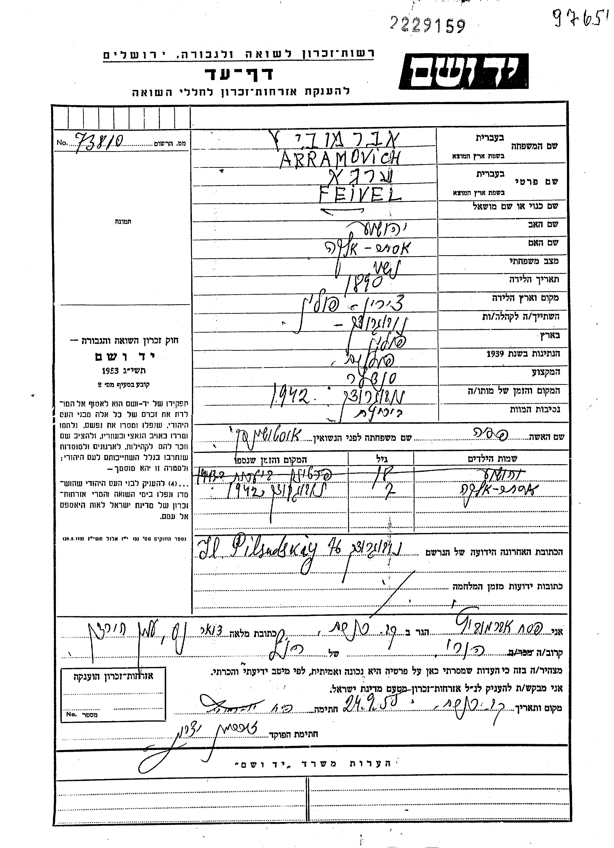 Abramovich Elka Ester 1935 Nowogrodek, Polen Gedenkblatt