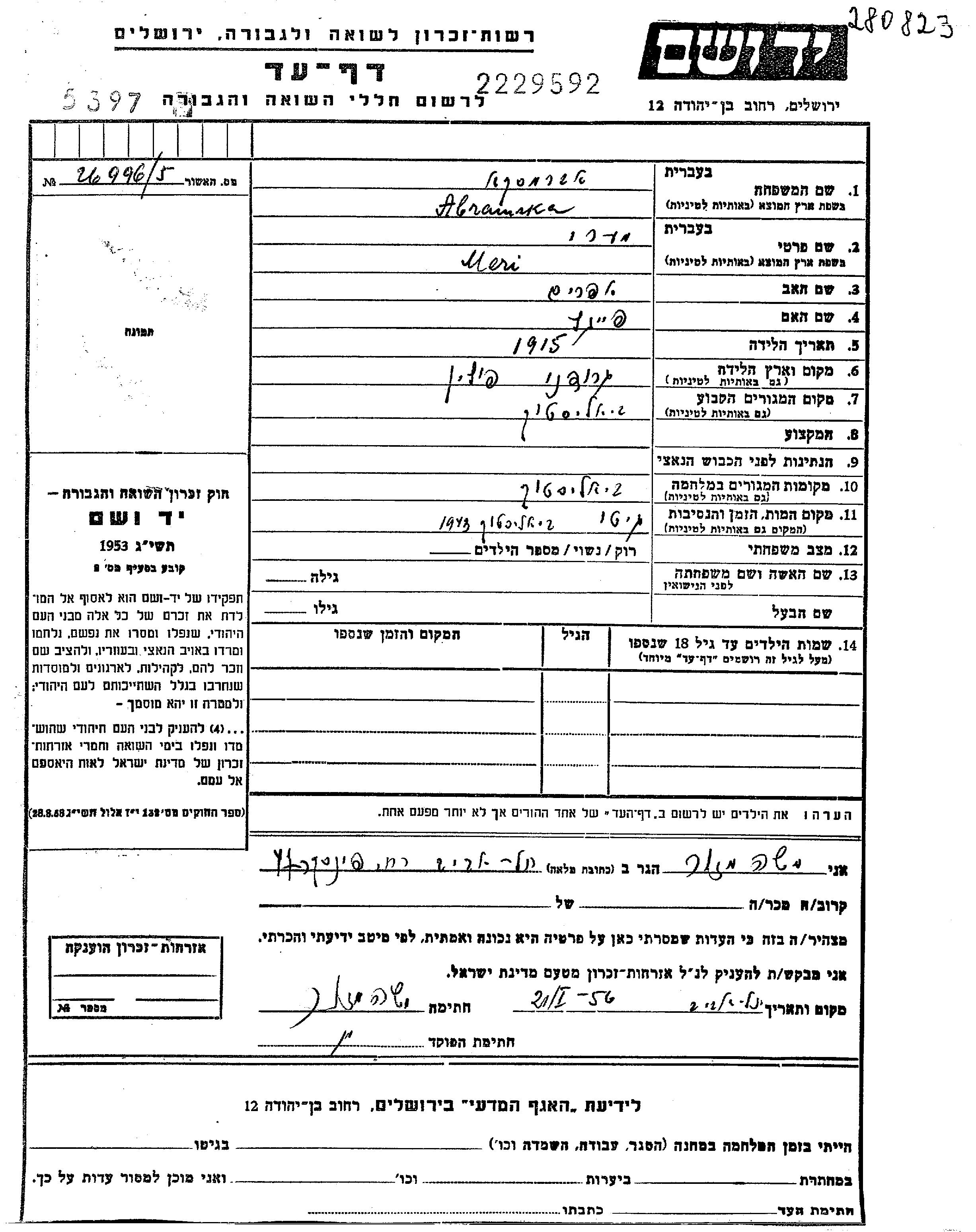 Abramski Mari 1915 Bialystok, Polen Gedenkblatt