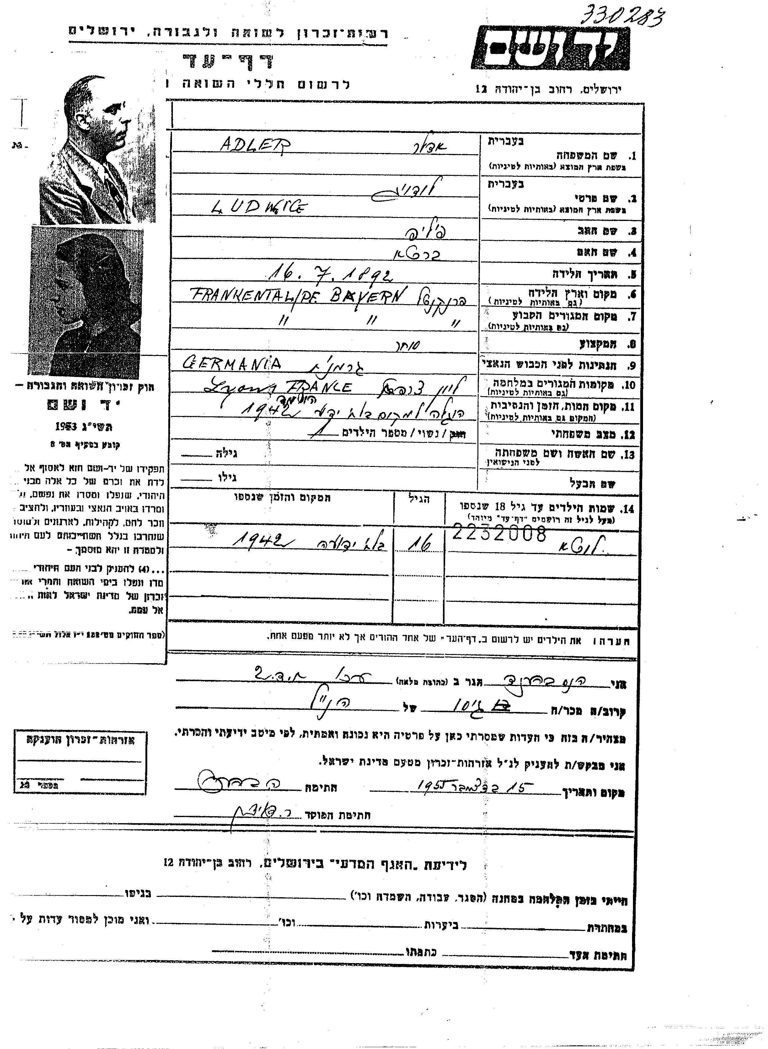 Lota Adler wurde Sie war die Tochter von Ludwig und Liesl. Sie war Kind. Vor dem Zweiten Weltkrieg lebte sie in Frankenthal, Deutsches Reich. Während des Krieges war sie in Lyon, Frankreich.