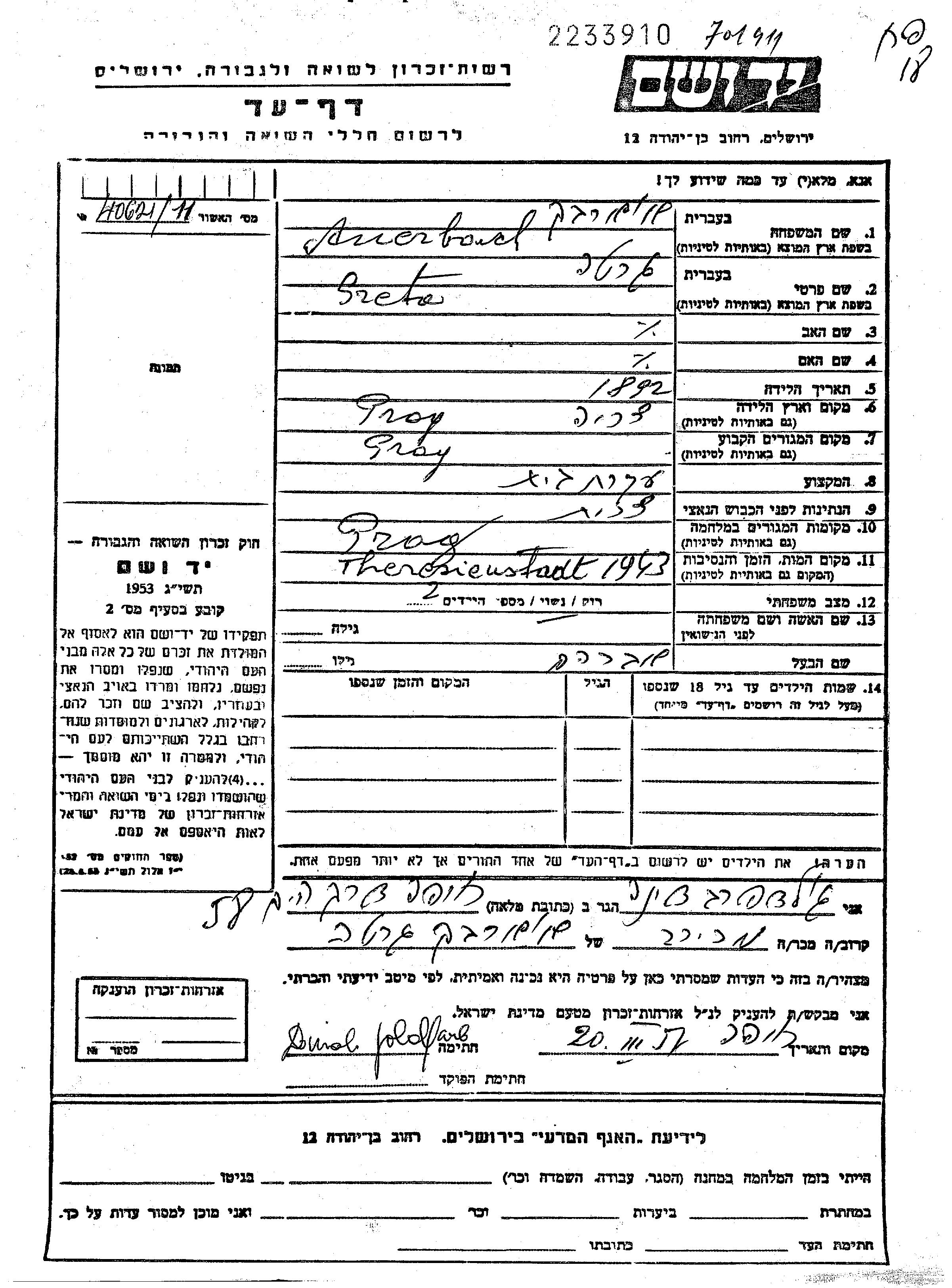 Greta Auerbach wurde im Jahr 1892 in Prague, Tschechoslowakei geboren. Sie war Hausfrau und mit Avraham Verheiratet. Vor dem Zweiten Weltkrieg lebte sie in Prague, Tschechoslowakei. Während des Krieges war sie in Prague, Tschechoslowakei.