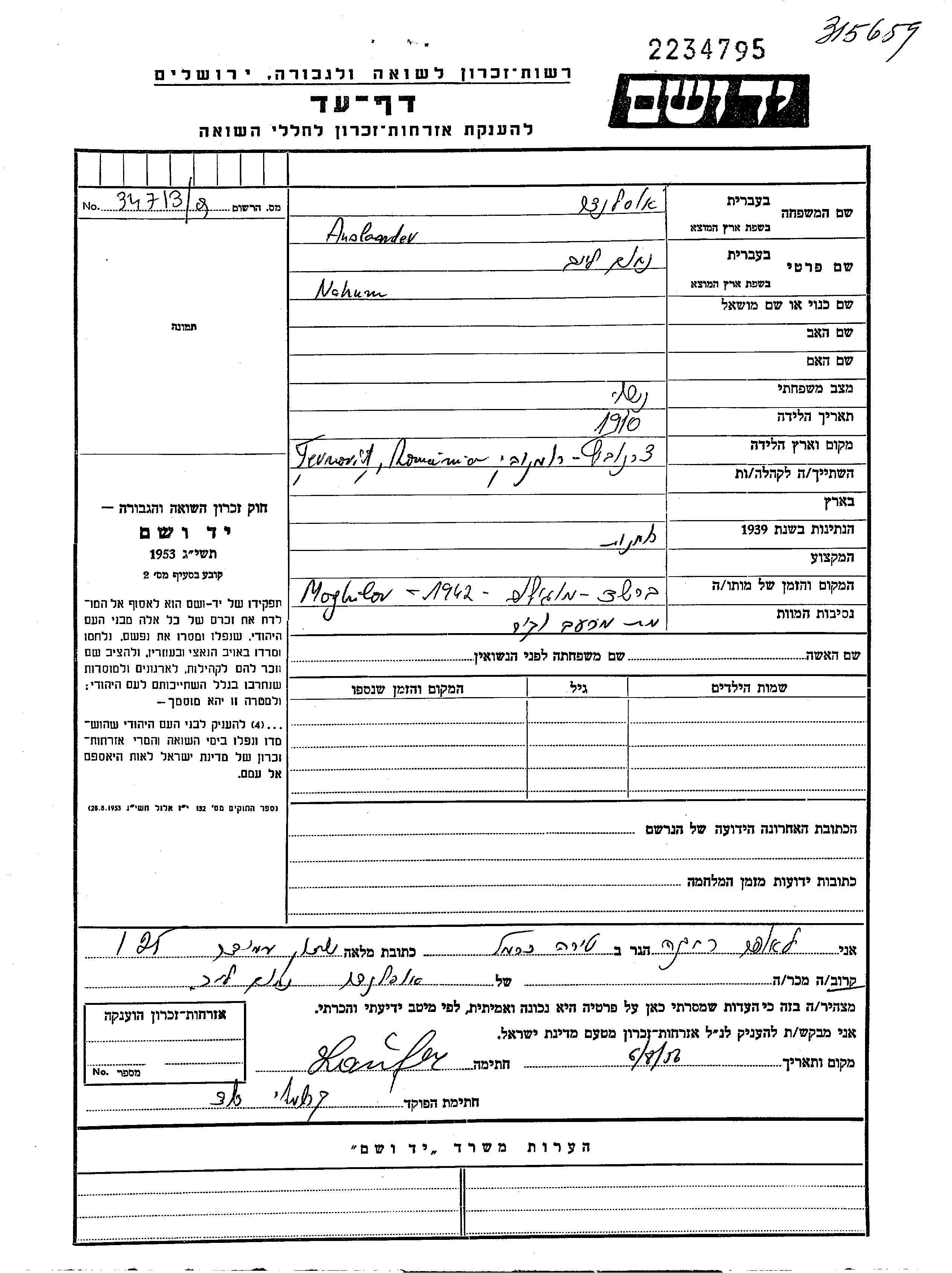 Nahum Leib wurde in der Schoah ermordet. Todesort: Bershad, Ukraine (UdSSR) im Jahr 1942.