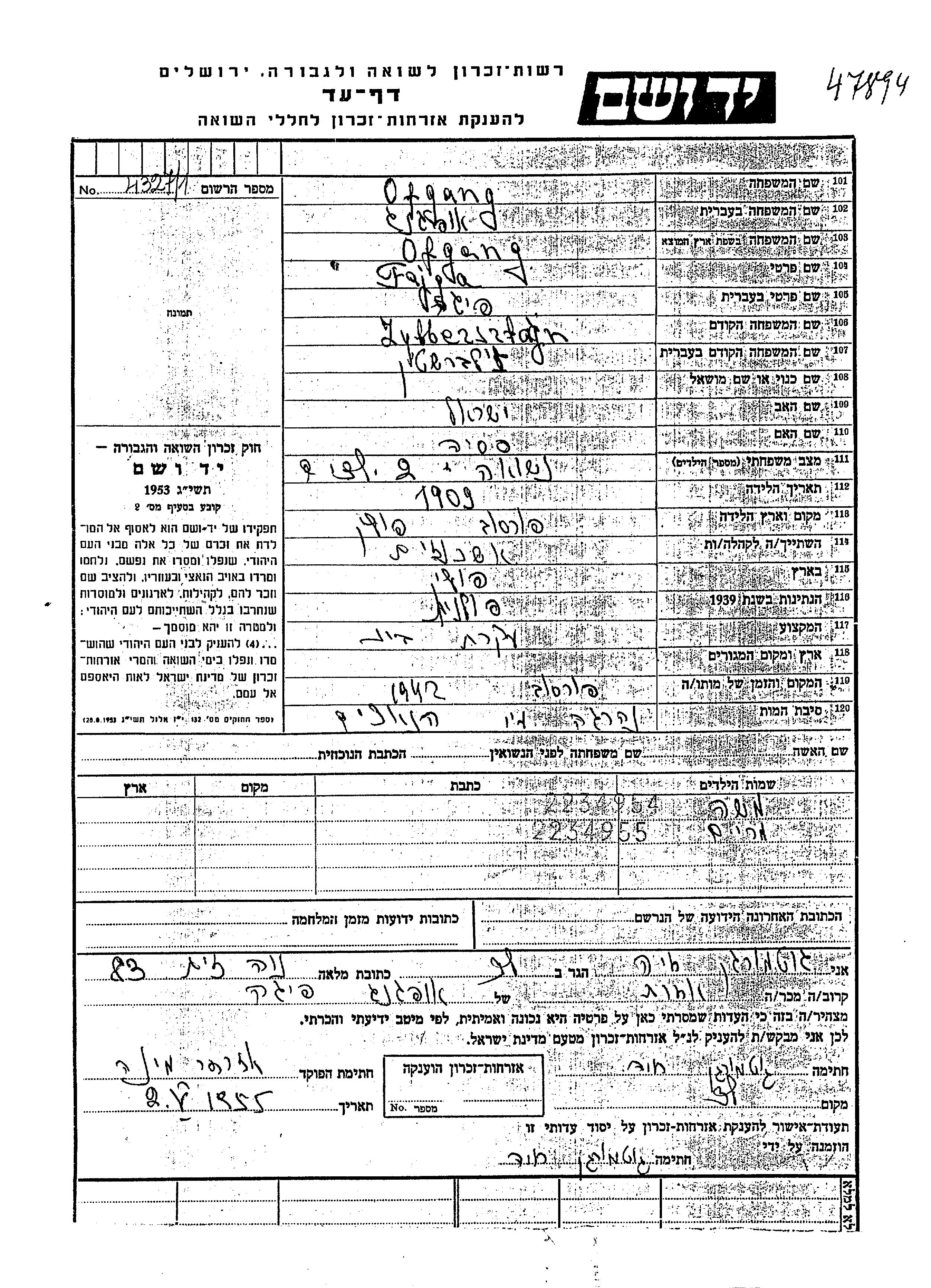 Ofgang Moshe unbekannter Ort, Gedenkblatt
