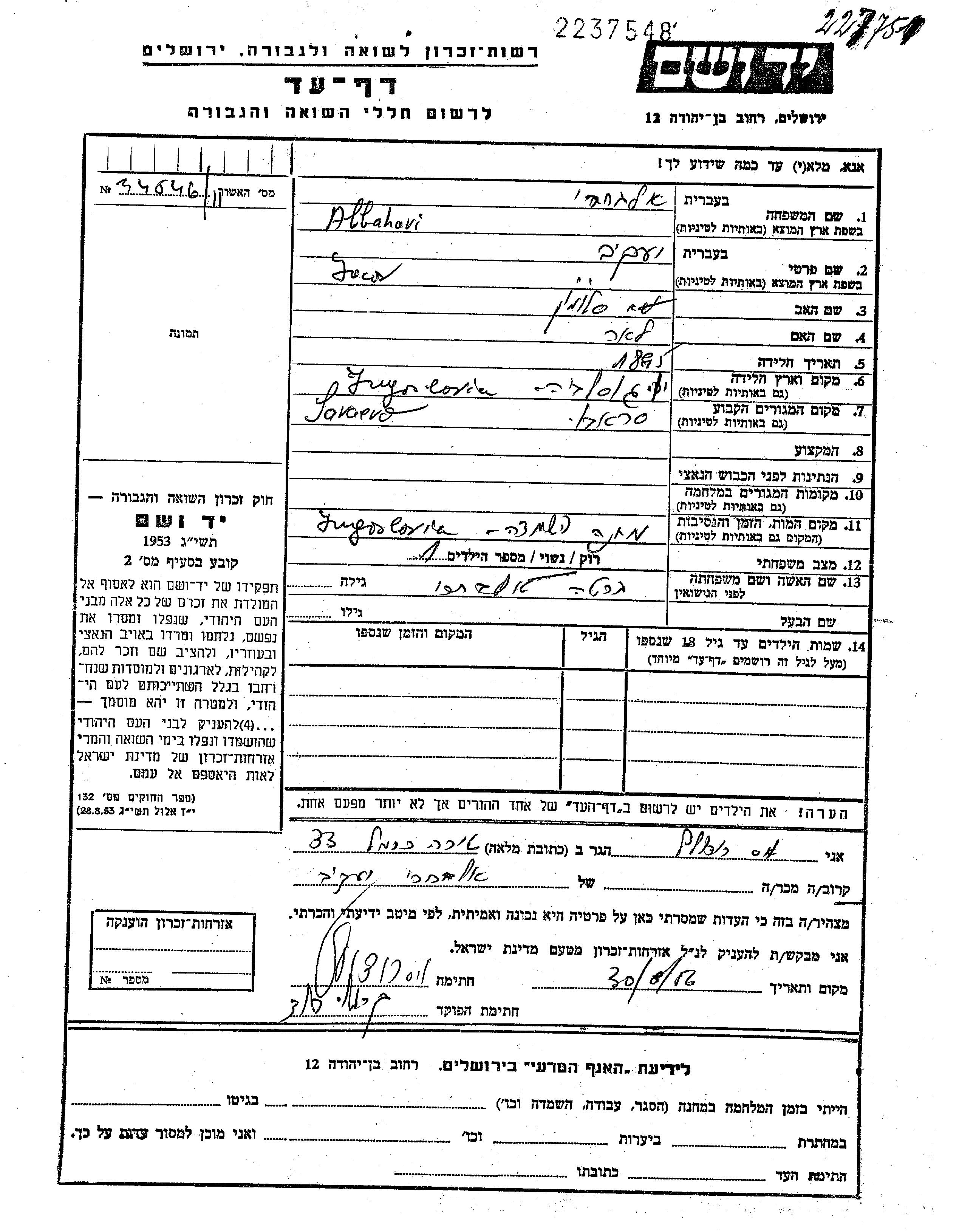 Jacov wurde in der Schoah ermordet. Todesort: Jugoslawien.