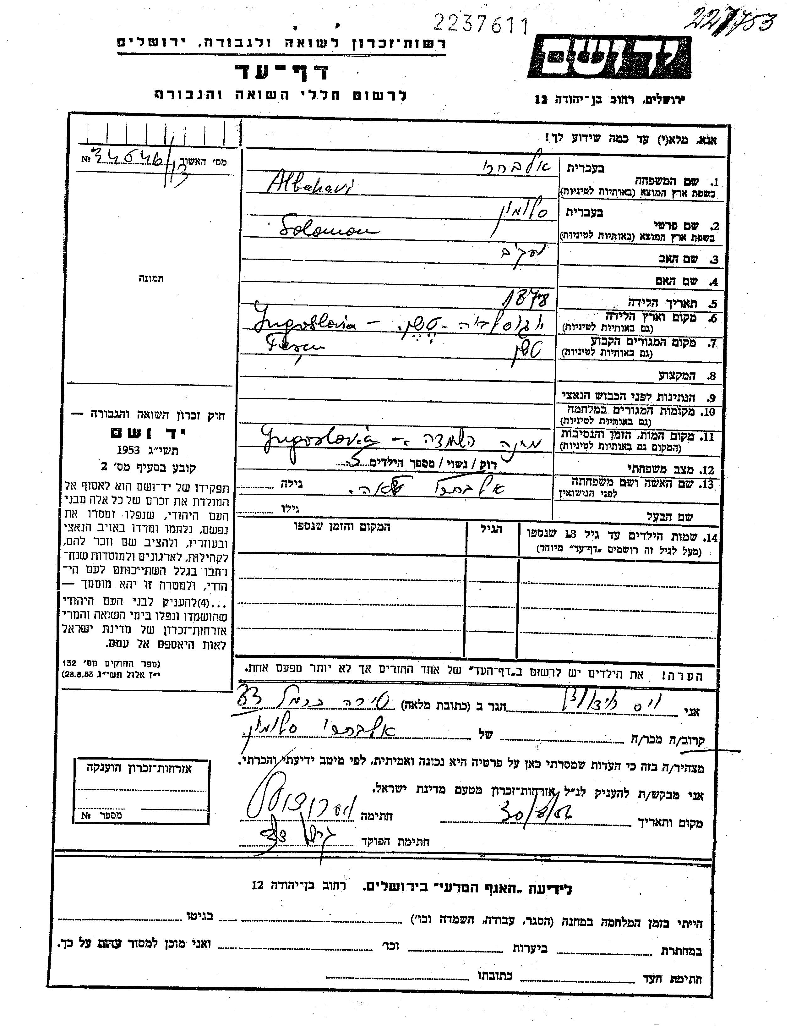Solomon wurde in der Schoah ermordet. Todesort: Jugoslawien.