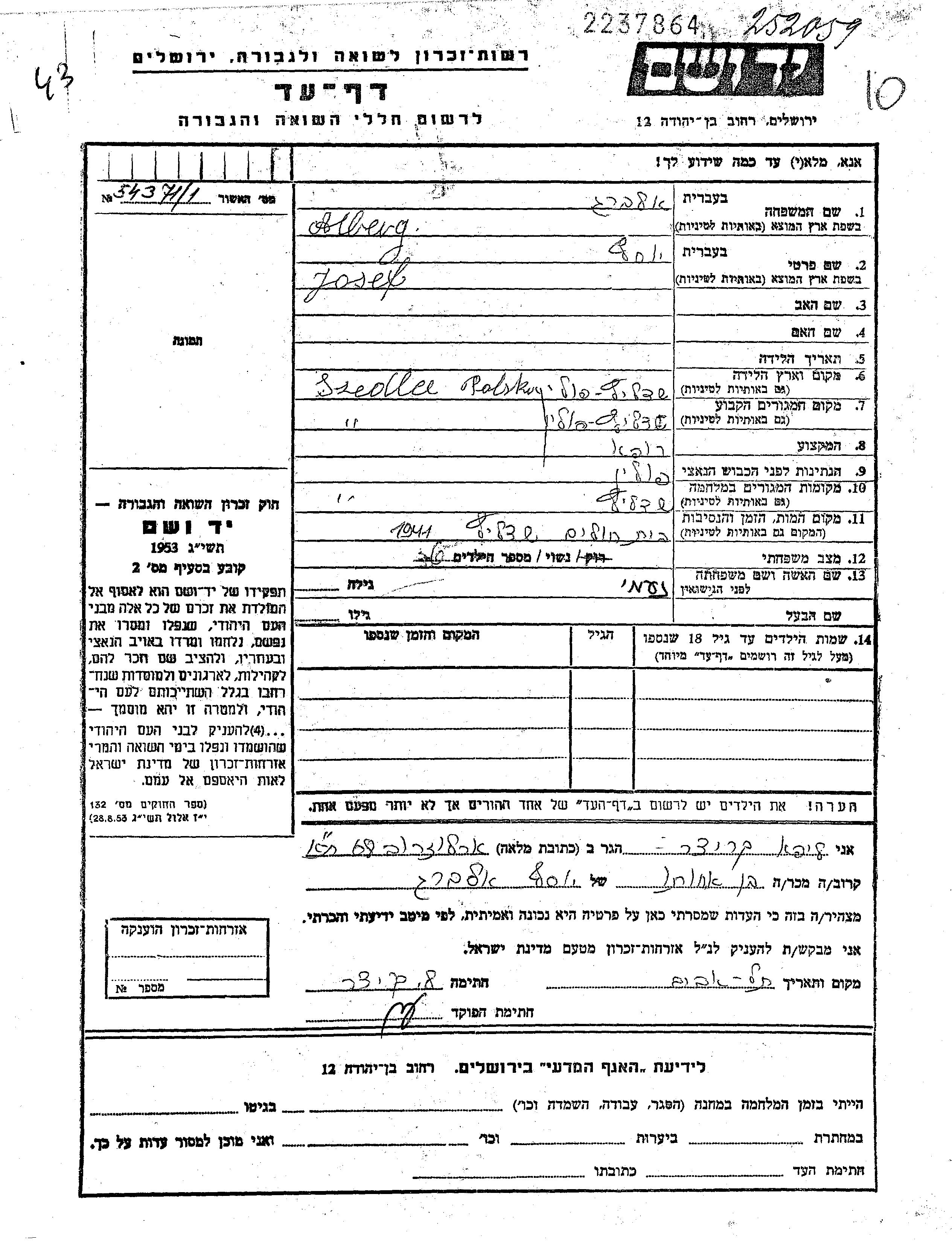 Josef wurde in der Schoah ermordet. Todesort: Siedlce, Polen im Jahr 1941.