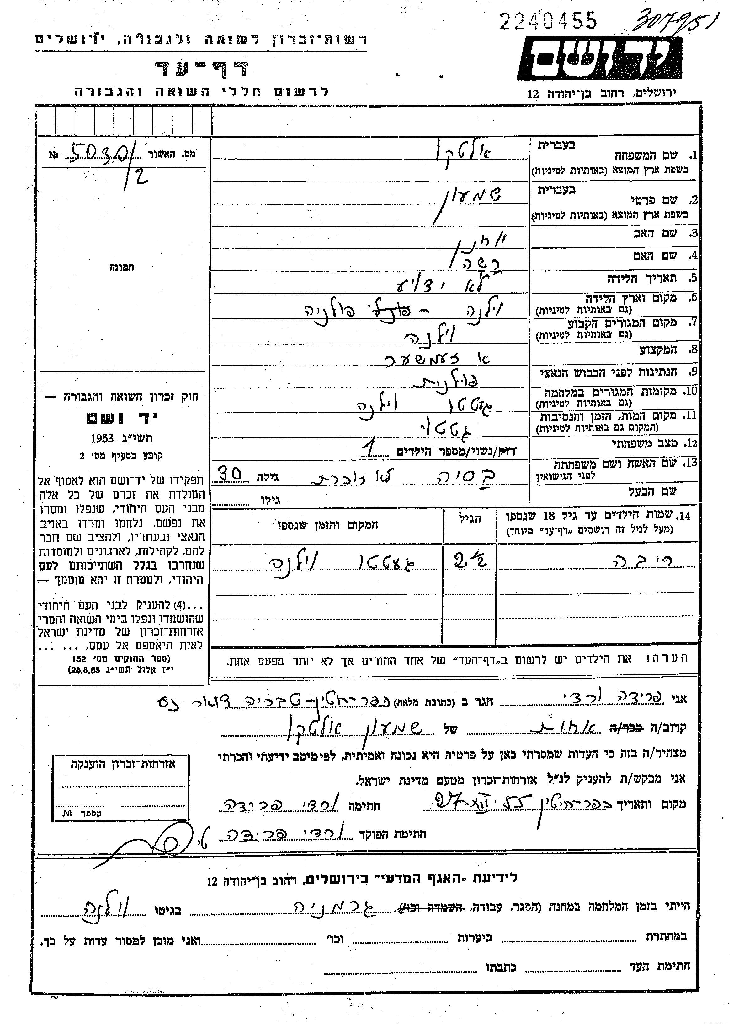Shimon wurde in der Schoah ermordet. Todesort: Wilno, Polen.