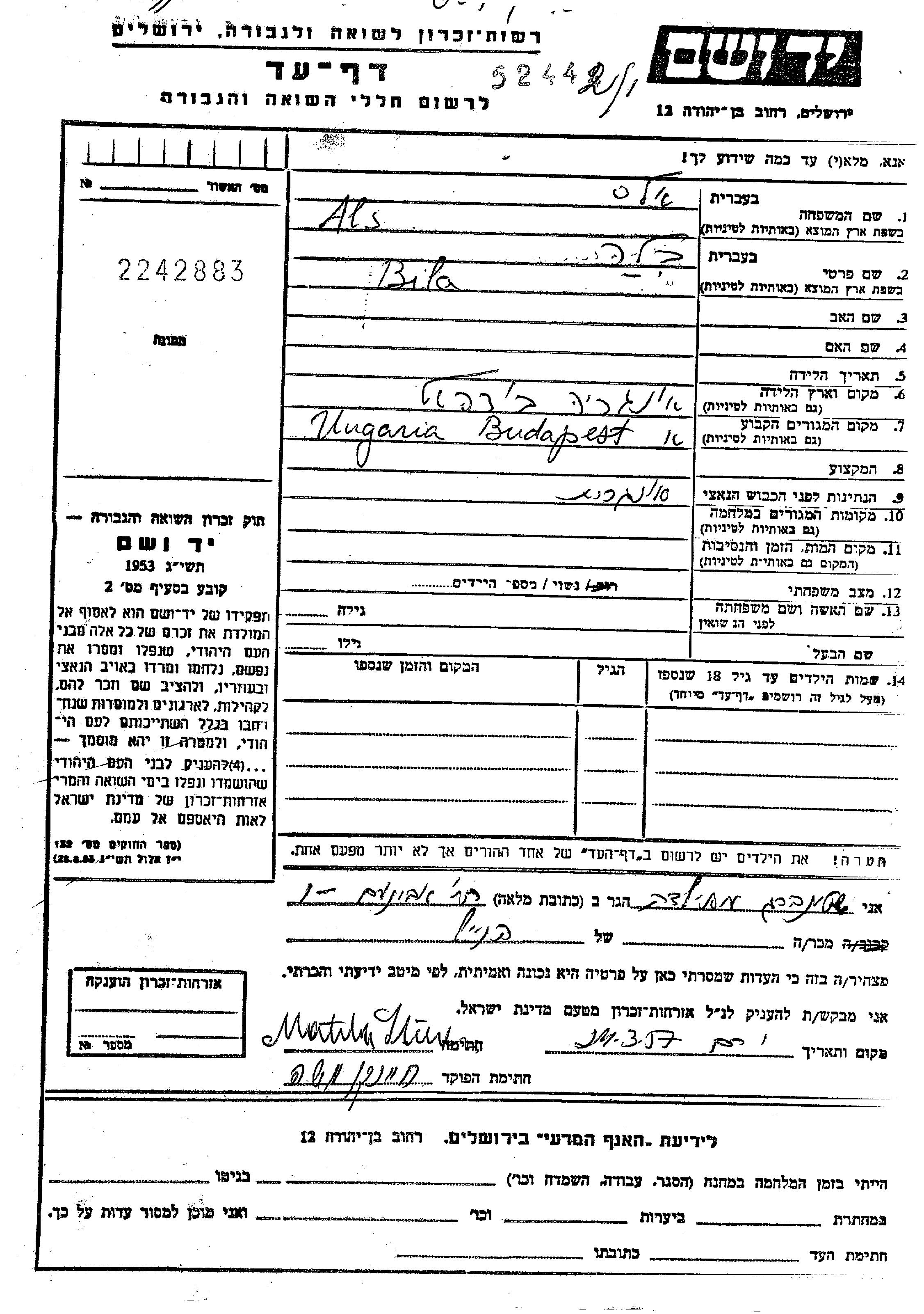 Bila wurde in der Schoah ermordet.