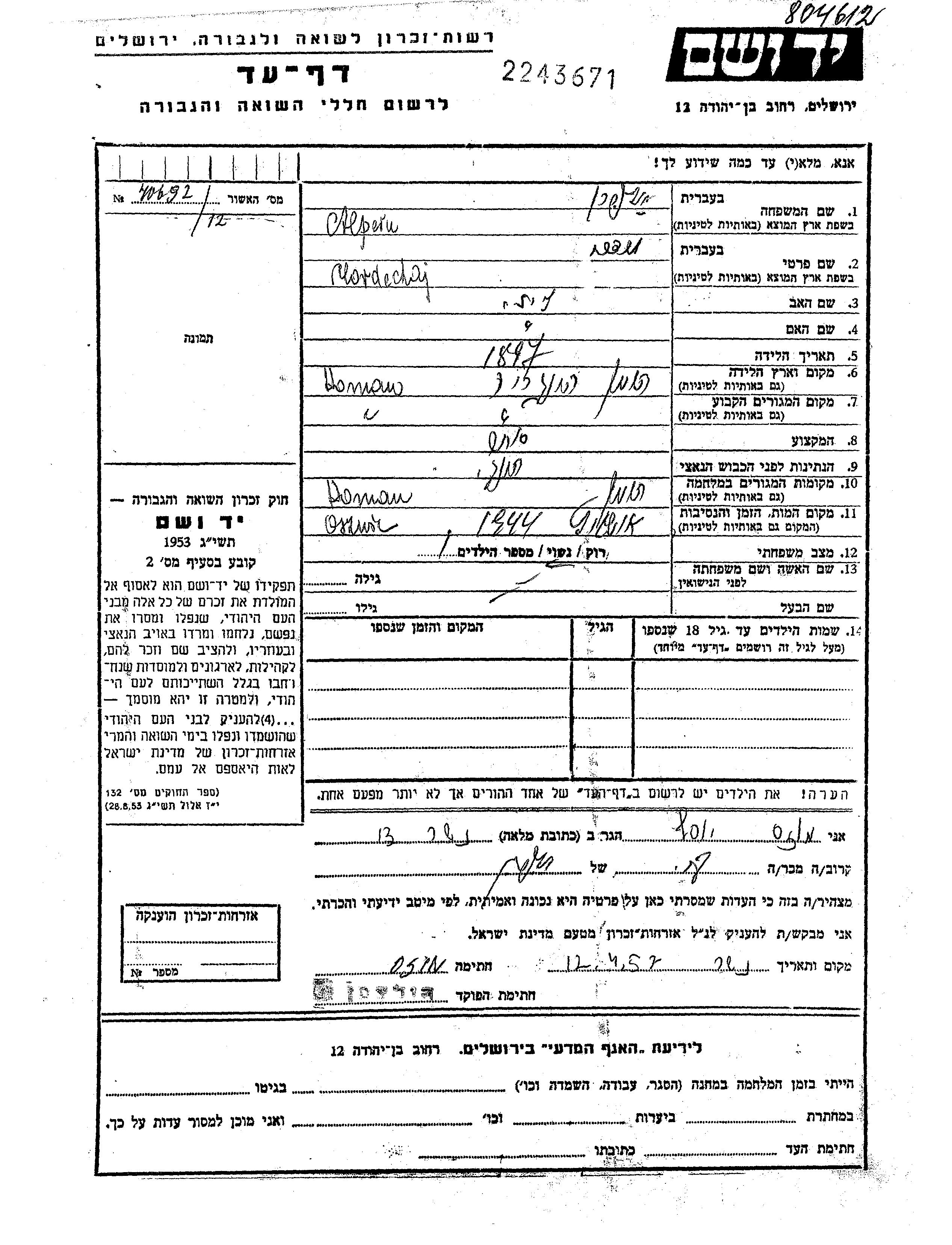 Mordechaj wurde in der Schoah ermordet. Todesort: Auschwitz, Polen im Jahr 1944.