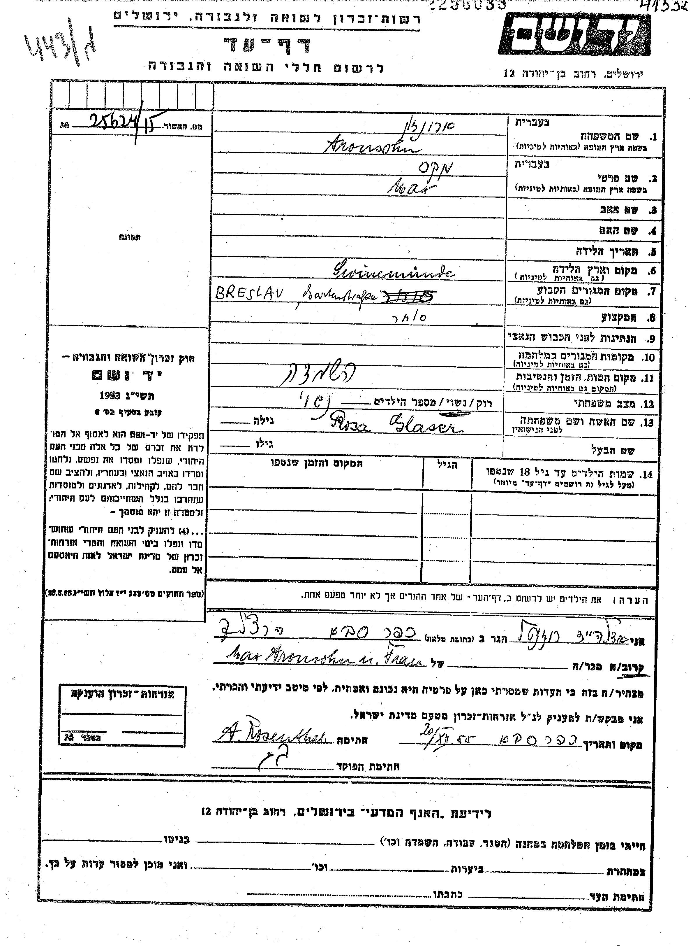 Max Aronsohn wurde in Swinemuende, Deutsches Reich geboren. Er war Kaufmann/-frau und mit Rosa, geb. Glaser Verheiratet. Vor dem Zweiten Weltkrieg lebte er in Breslau, Deutsches Reich. Während des Krieges war er in Polen.