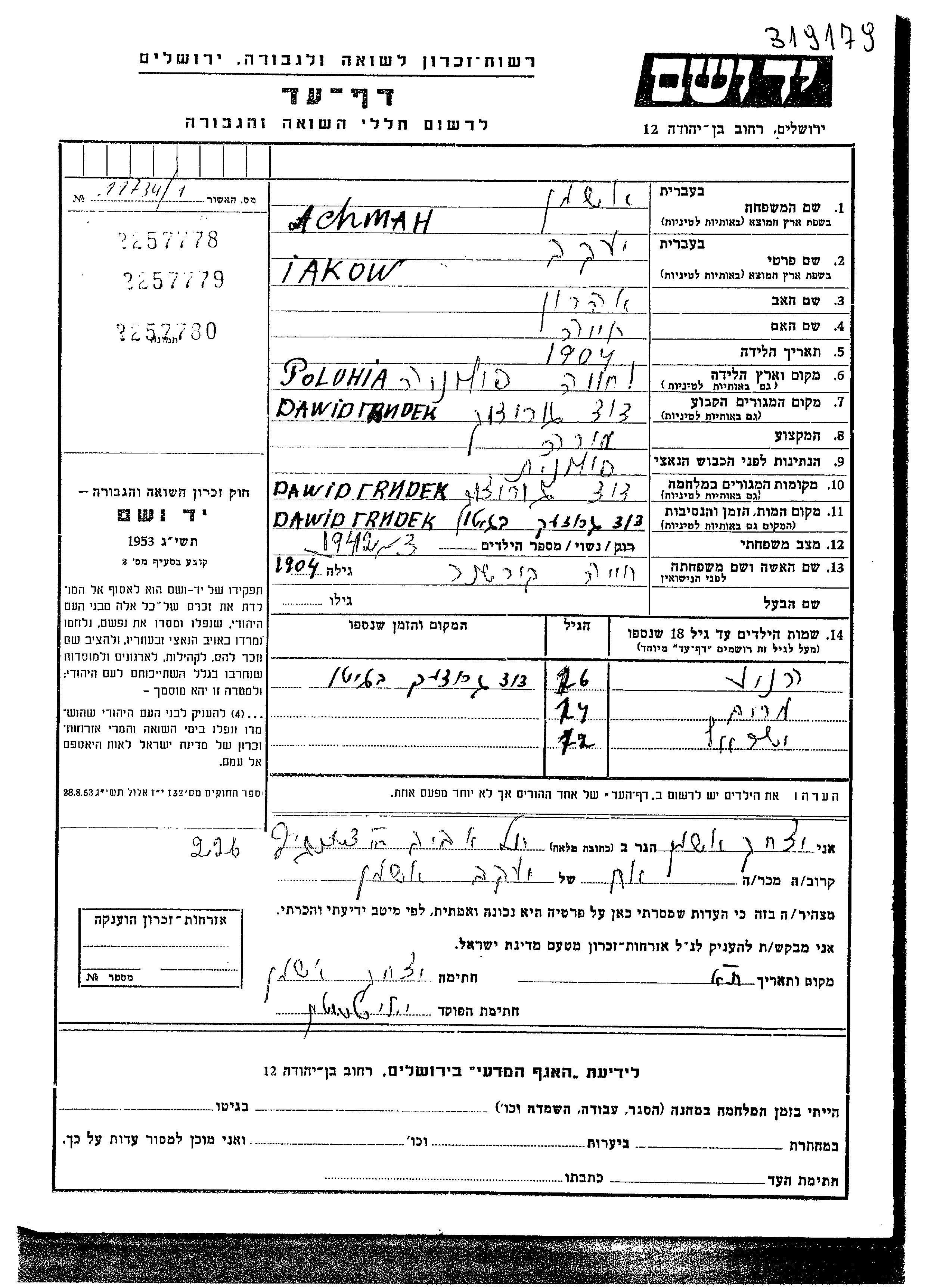 Henie wurde in der Schoah ermordet. Todesort: David Horodok, Polen.