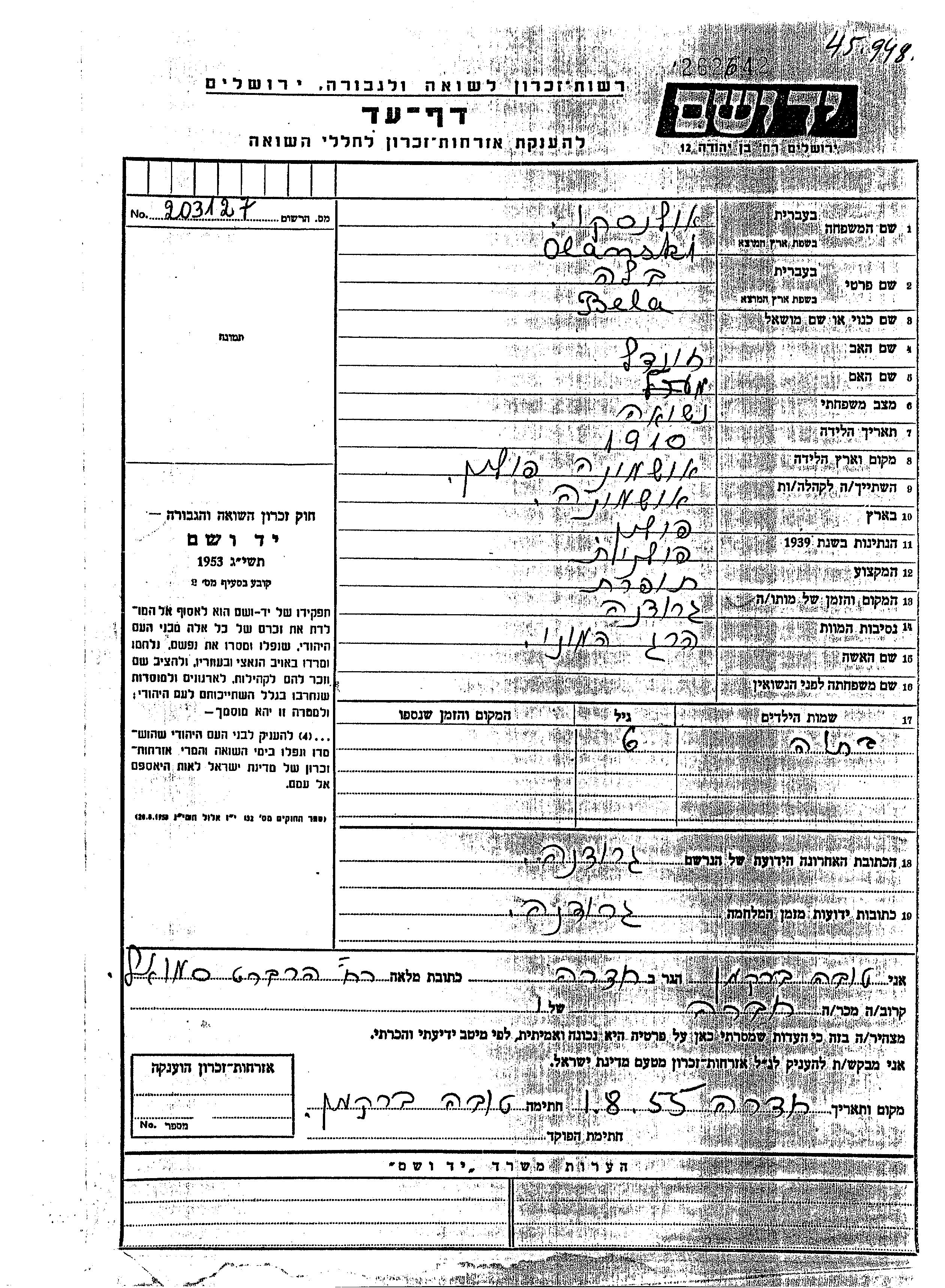 Batia Olanski wurde Sie war die Tochter von Bela. Sie war Kind. Vor dem Zweiten Weltkrieg lebte sie in Grodno, Polen.