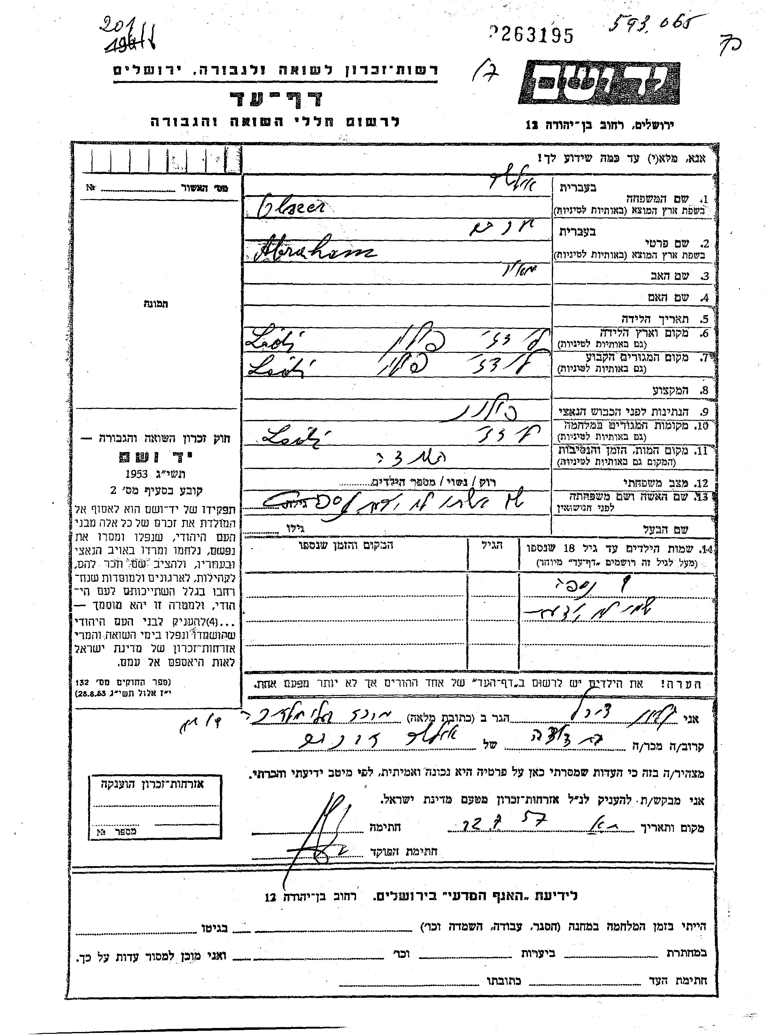 Abraham Olszer wurde in Lodz, Polen geboren. Er war der Sohn von Meir. Er war Verheiratet. Vor dem Zweiten Weltkrieg lebte er in Lodz, Polen. Während des Krieges war er in Lodz, Polen.