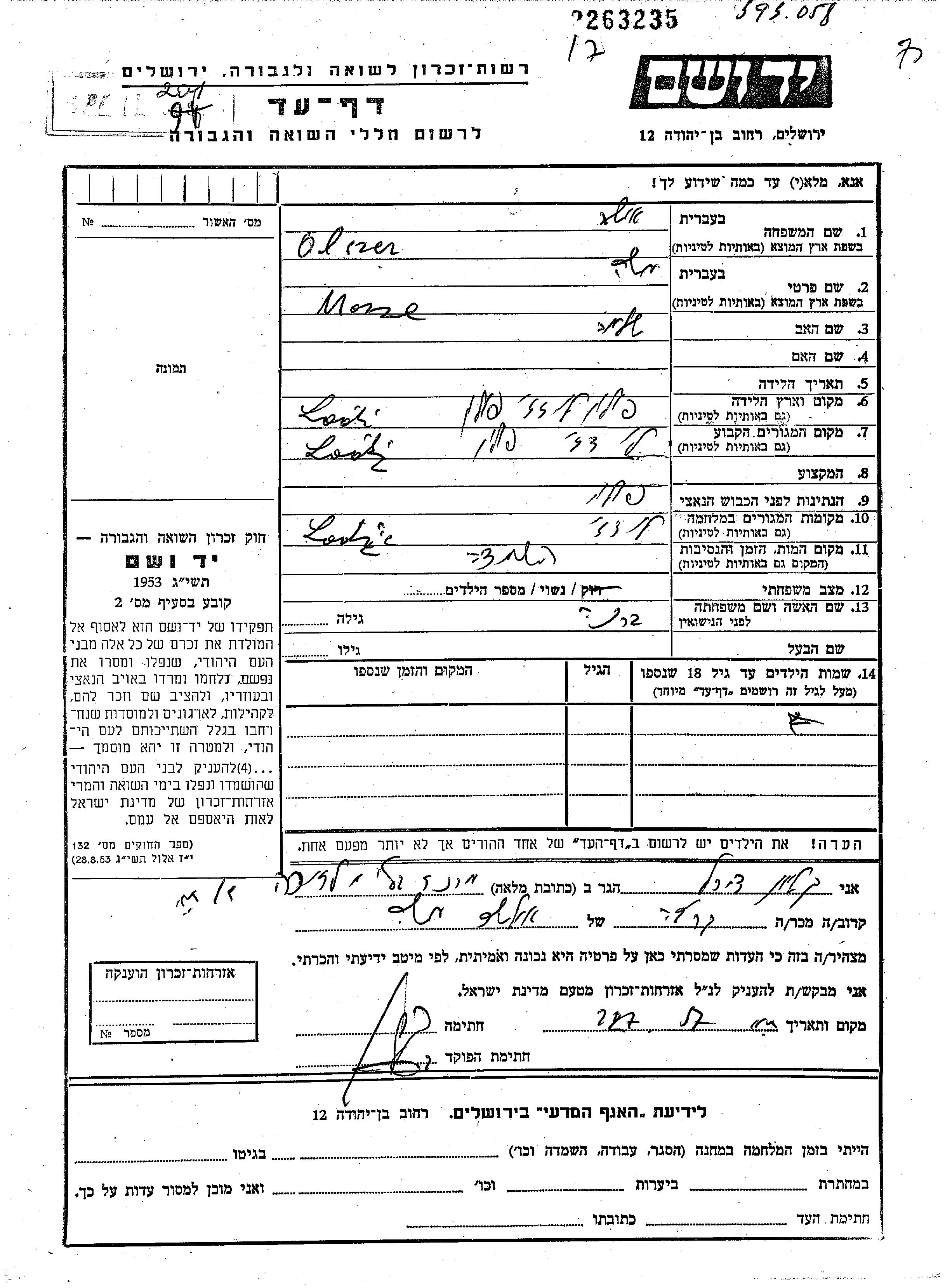 Mosze Olszer wurde in Lodz, Polen geboren. Er war der Sohn von Shlomo. Er war mit Bracha Verheiratet. Vor dem Zweiten Weltkrieg lebte er in Lodz, Polen. Während des Krieges war er in Lodz, Polen.
