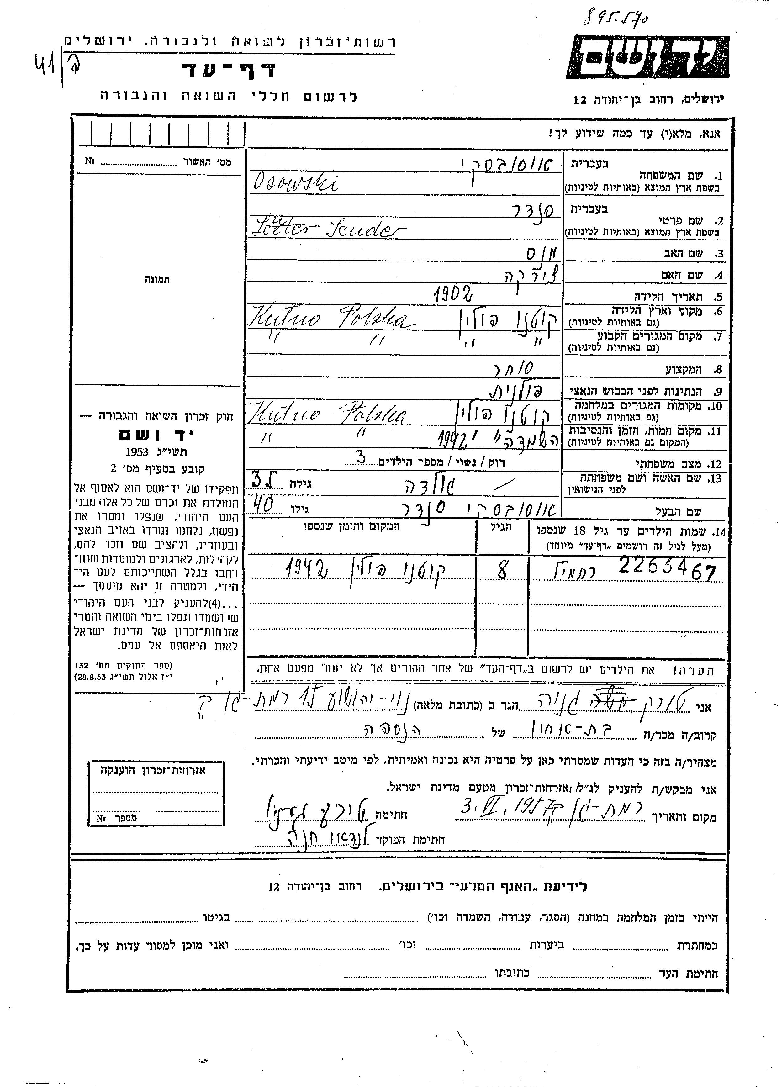 Aufenthaltsort während des Krieges/Schoah