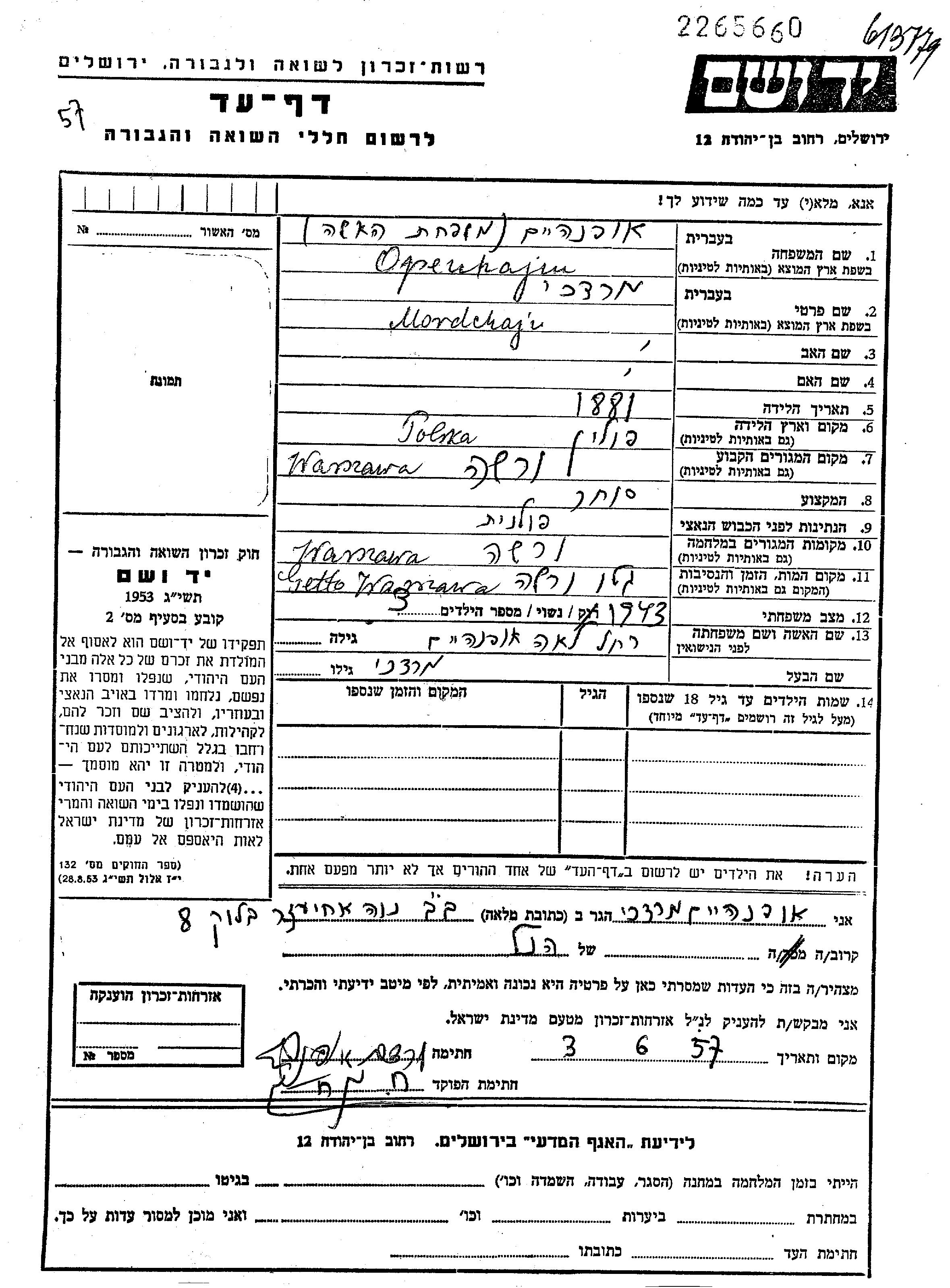 Mordchaj wurde in der Schoah ermordet. Todesort: Warszawa, Polen im Jahr 1943.
