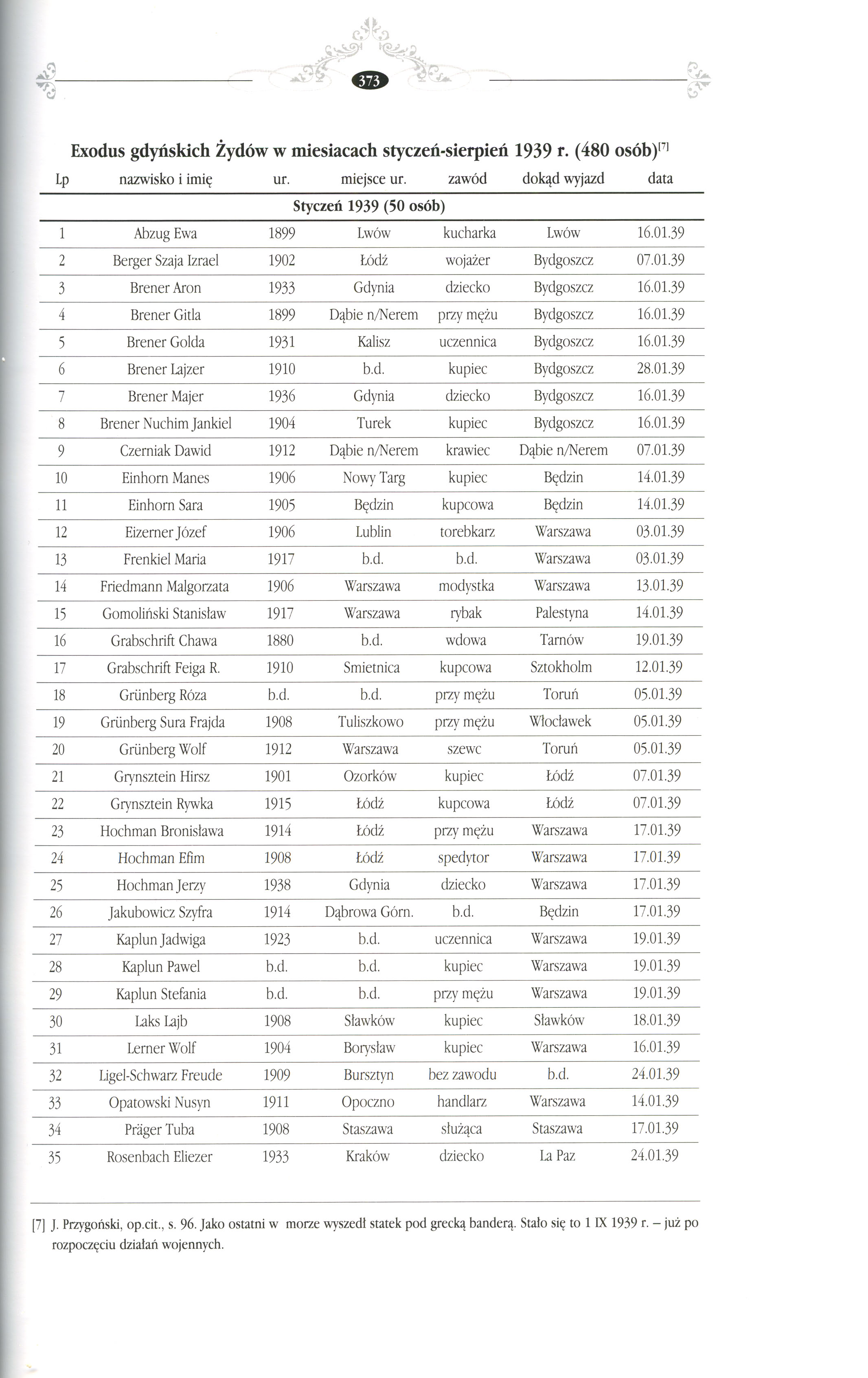 List of Jews who moved from Gdynia to other places in Poland and outside Poland during 01-08/1939, from a memorial book