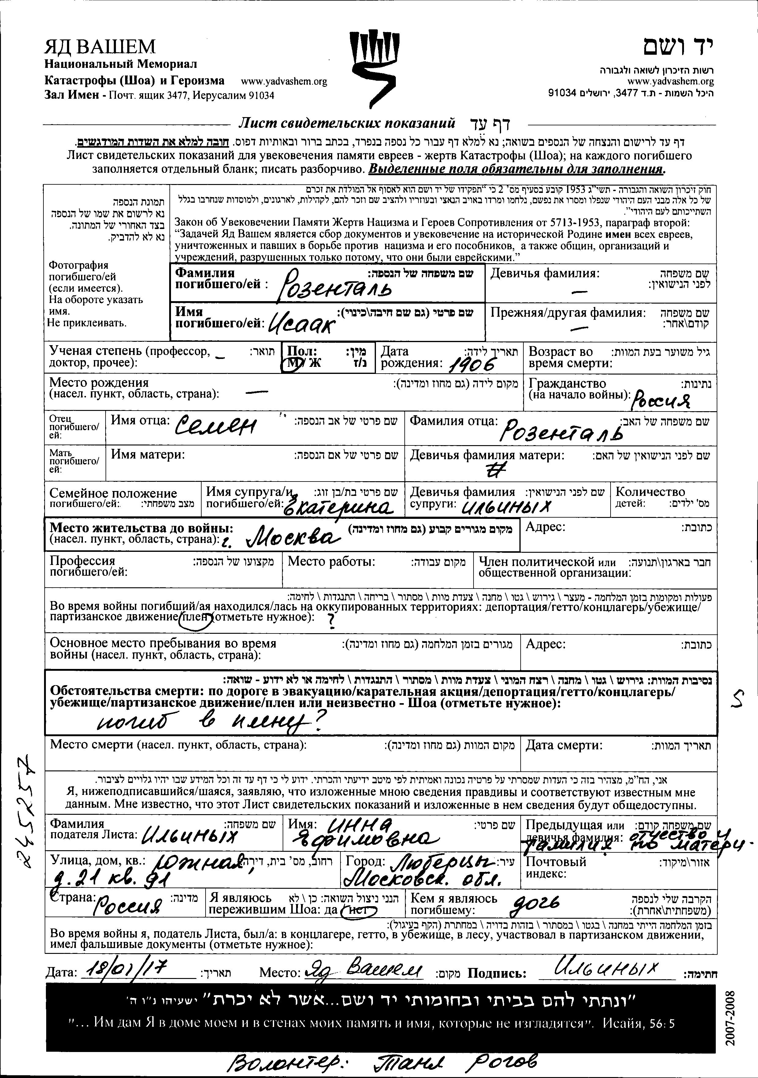 Isaak Rozental wurde im Jahr 1906 geboren. Er war der Sohn von Semyon. Er war mit Yekaterina, geb. Ilyinykh Verheiratet. Vor dem Zweiten Weltkrieg lebte er in Moskva, Russland (UdSSR). Während des Krieges war er in die Sowjetischen Streitkräfte.