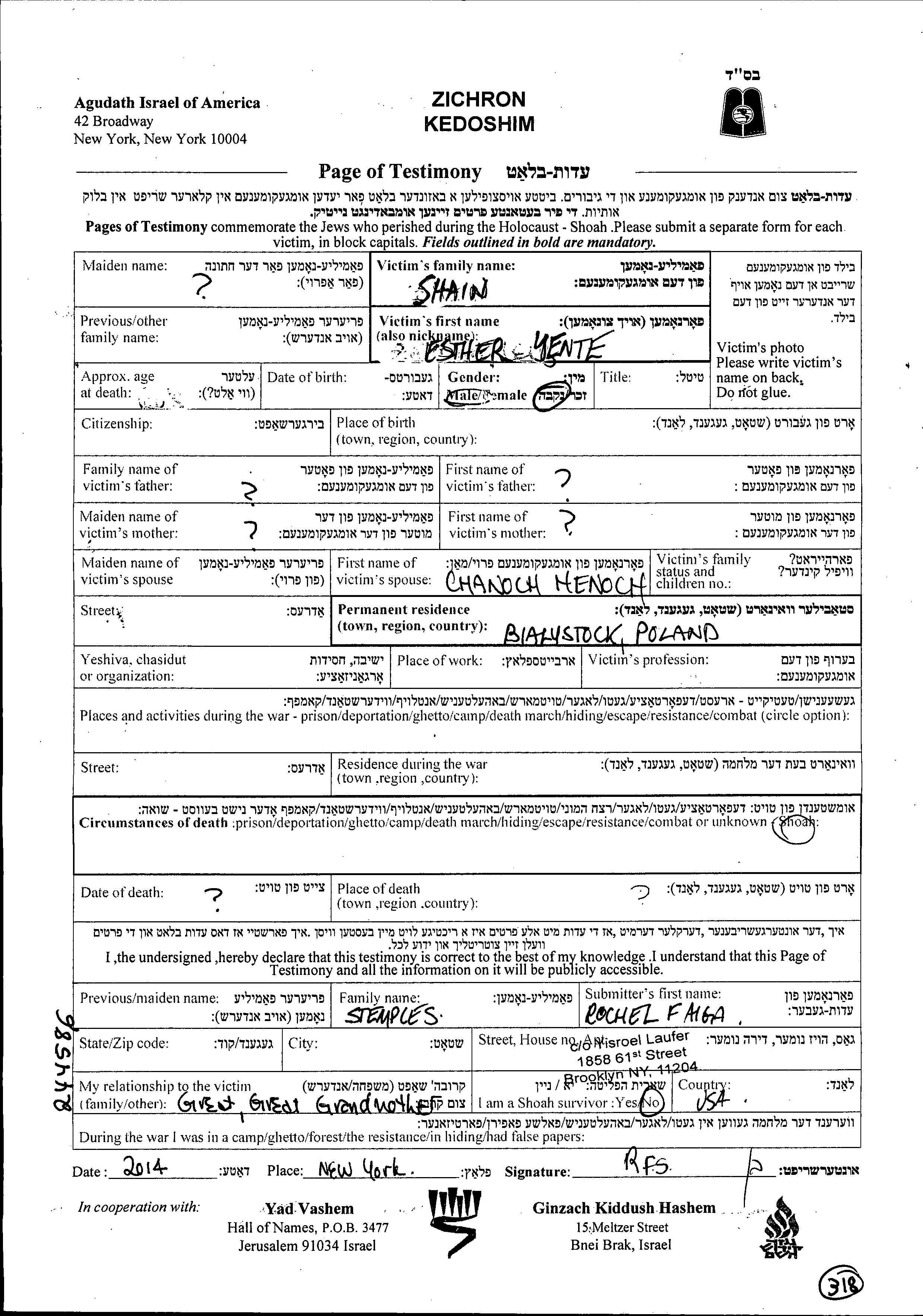 Suche nach einem Todesjahr im Zeitraum der Holocaust: 1933 bis 1945. Bitte wählen Sie 'Exakt' im Auswahlmenü, um nur nach einem einzelnen Jahr zu suchen, alternativ können Sie die flexibleren Optionen '+/- 2 Jahre' oder '+/- 5 Jahre' wählen.