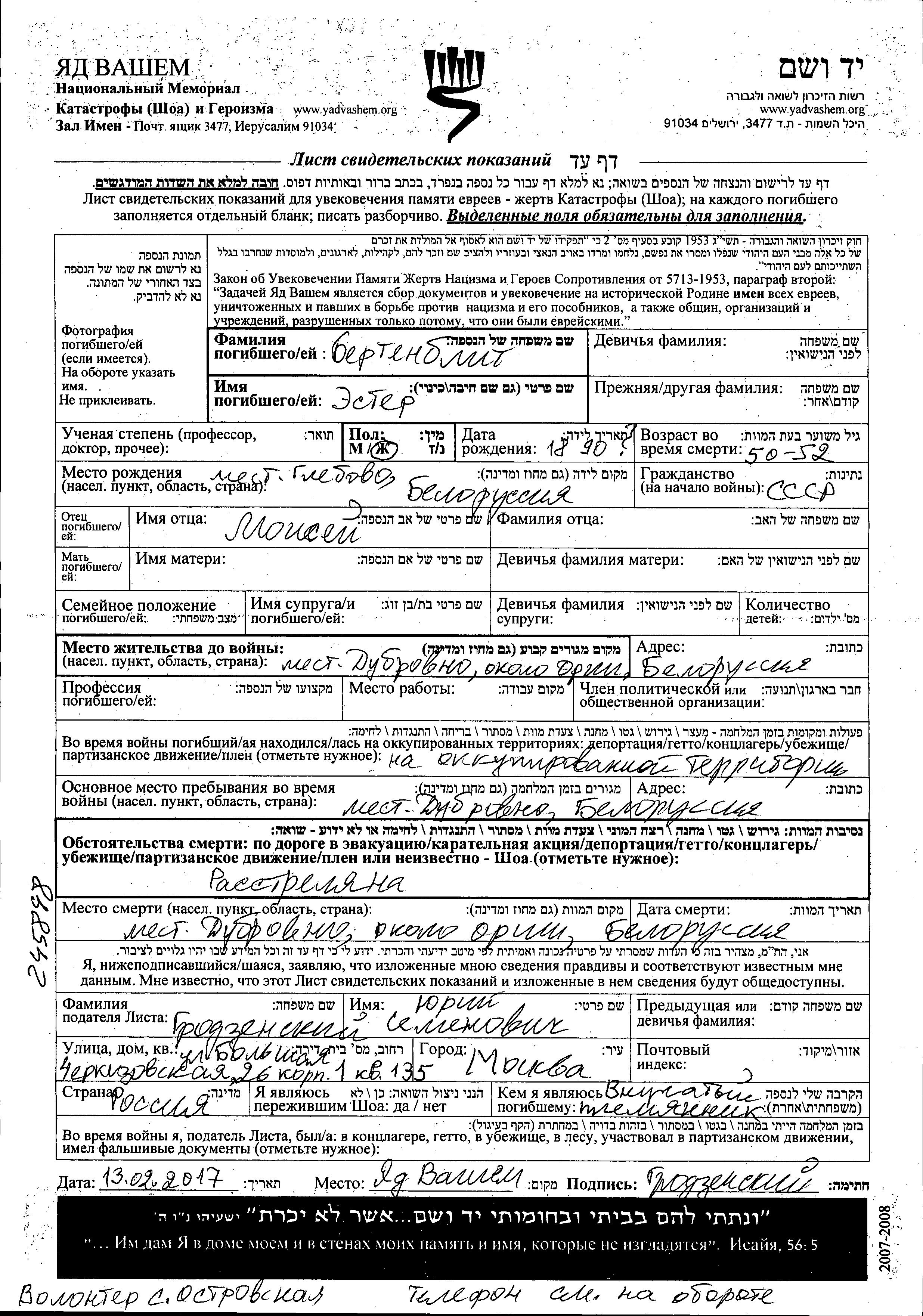 Bertenblit Ester Dubrovno, Weißrussland (UdSSR) Gedenkblatt