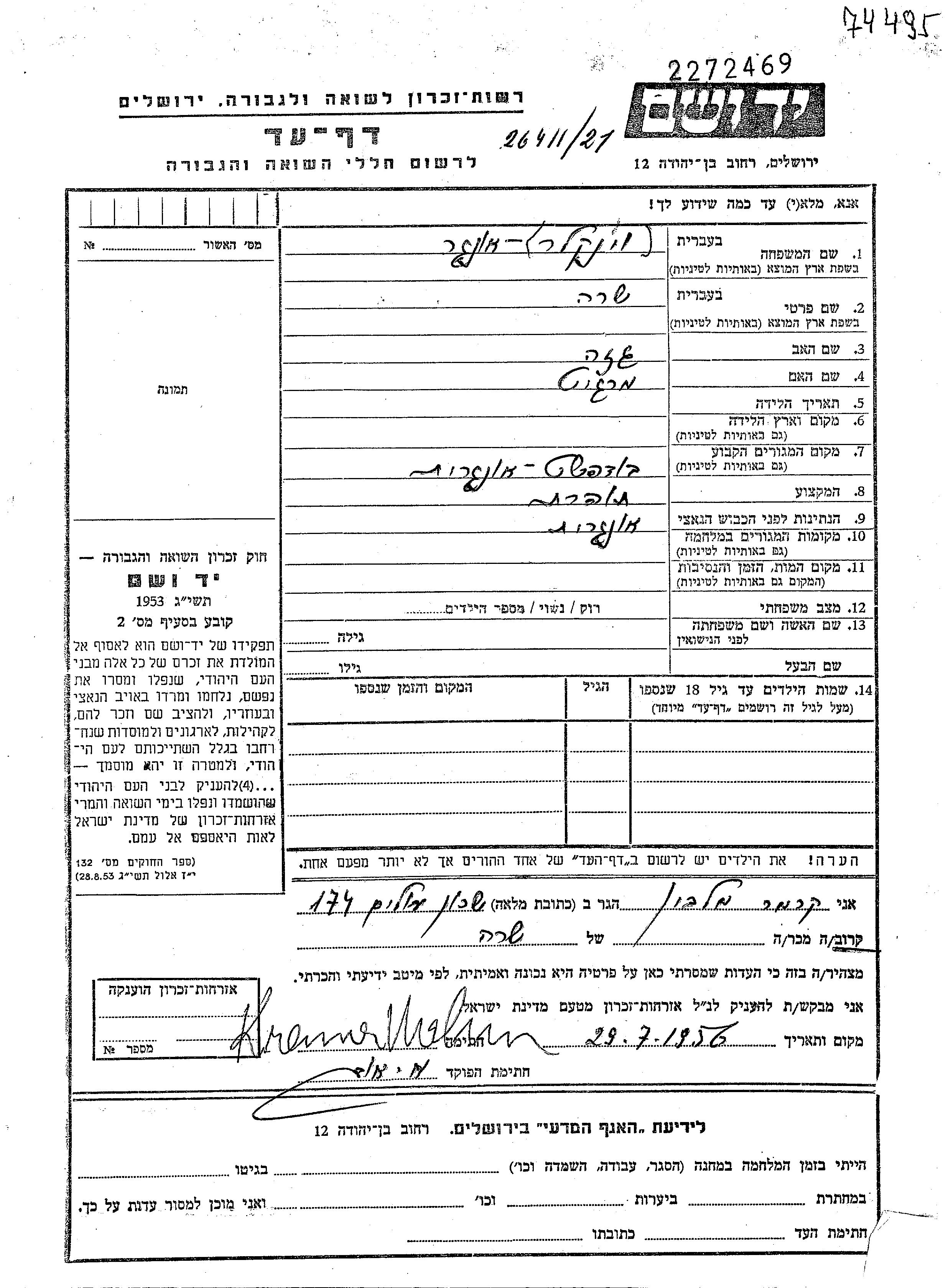 Sara Unger, geb. Vinkler wurde Sie war die Tochter von Geza und Margit. Sie war Schneiderin und mit Marton Verheiratet. Vor dem Zweiten Weltkrieg lebte sie in Budapest, Ungarn.