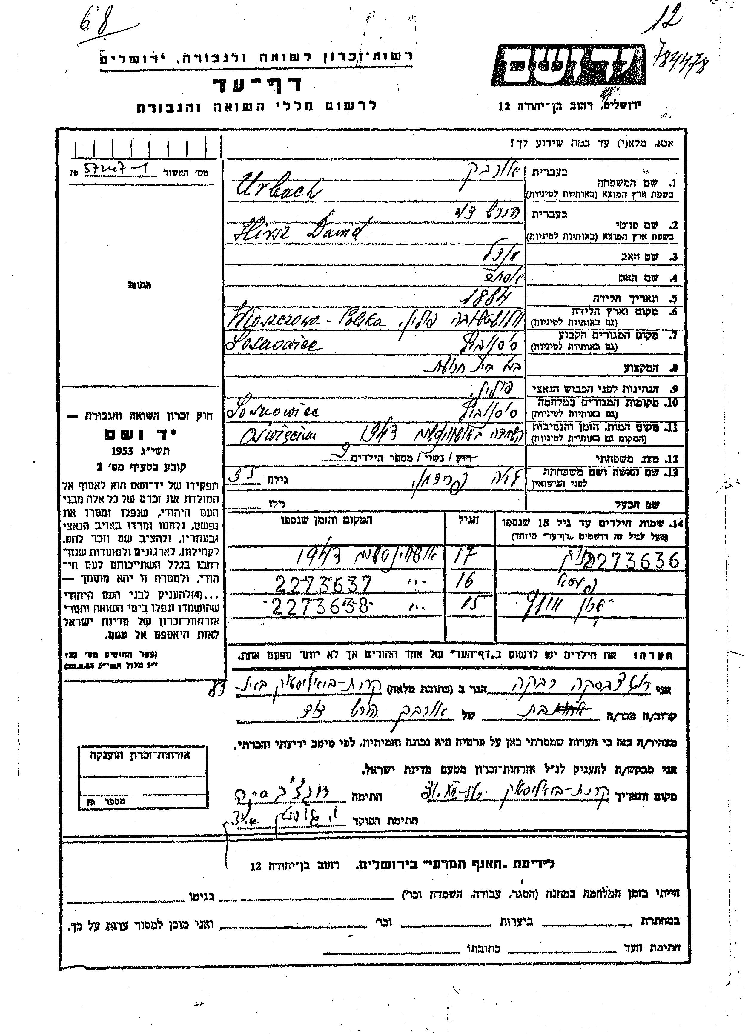 Urbakh Henoch 1925 Sosnowiec, Polen Gedenkblatt