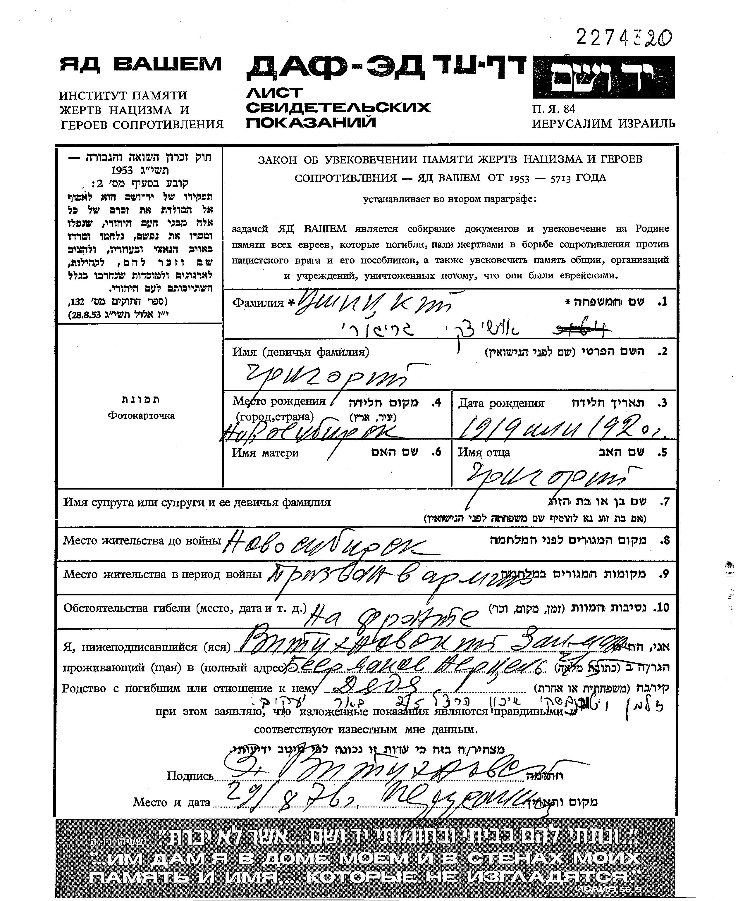 Grigori Ushitzki wurde im Jahr 1920 in Novosibirsk, Russland (UdSSR) geboren. Vor dem Zweiten Weltkrieg lebte er in Novosibirsk, Russland (UdSSR). Während des Krieges war er in die Sowjetischen Streitkräfte. Grigori im Militärdienst umgekommen.