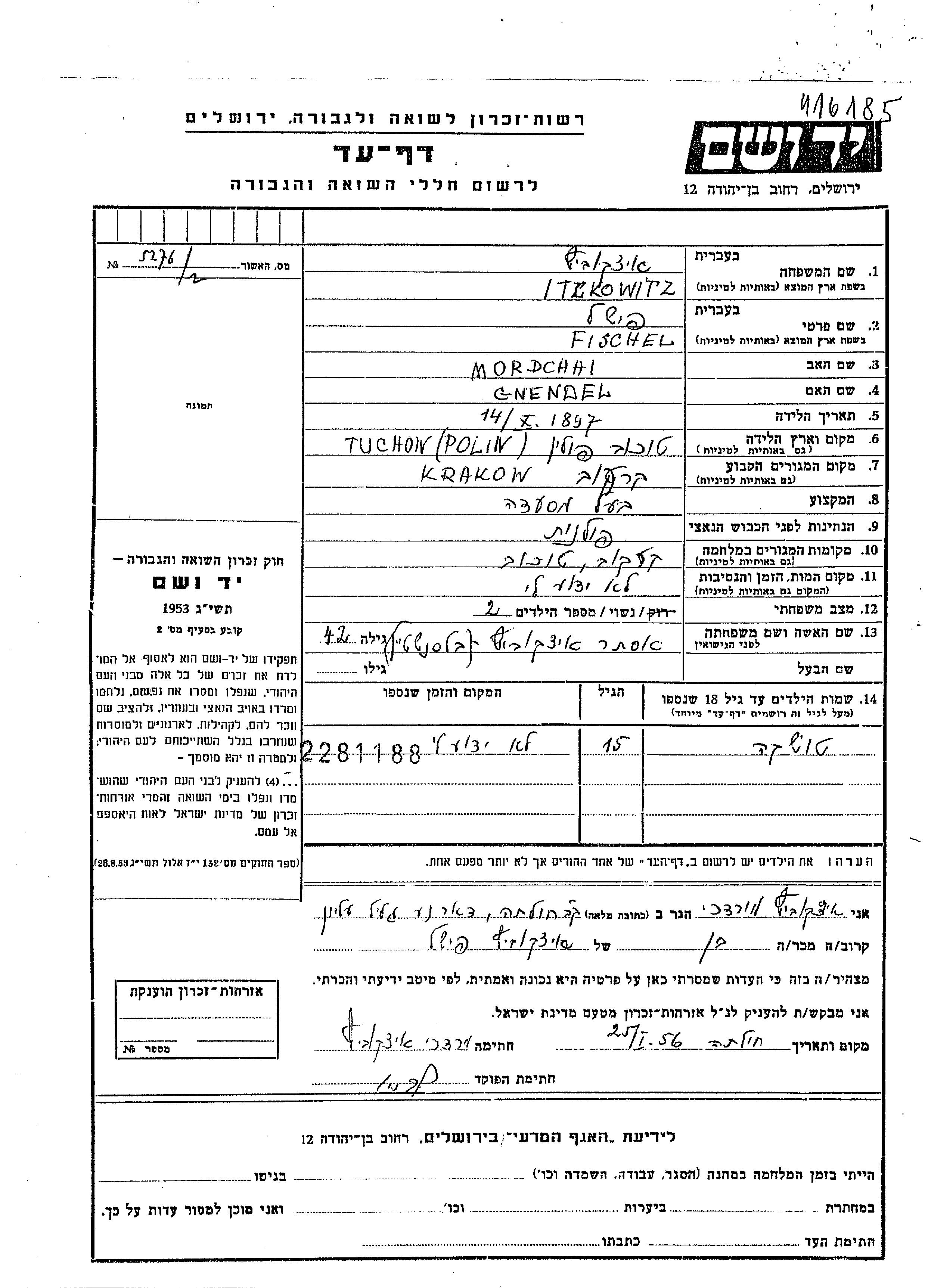 Itzkowitz Toshka Krakow, Polen Gedenkblatt