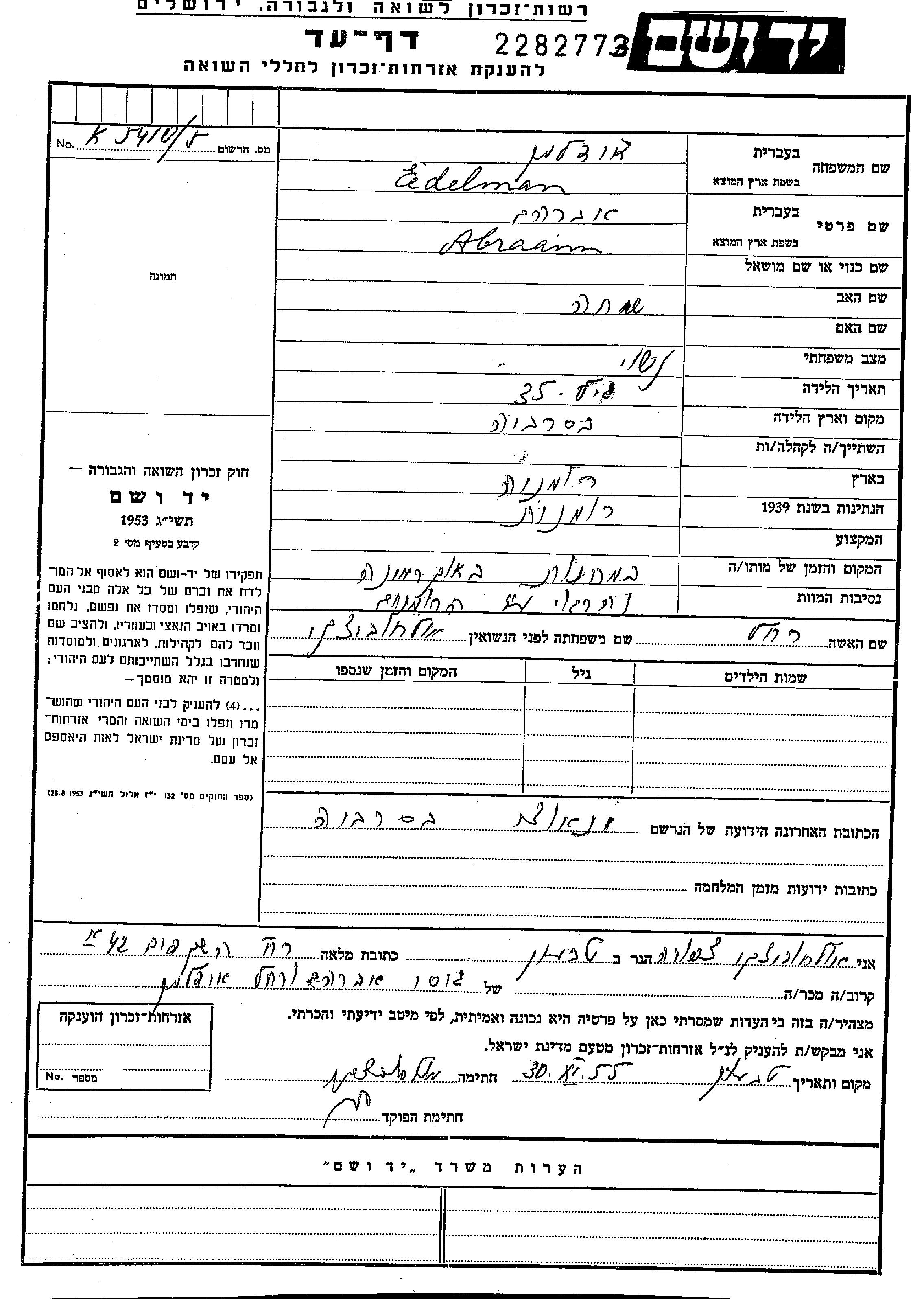 Abraam Eidelman Idelman wurde in Bessarabia, Rumänien geboren. Er war der Sohn von Simkha. Er war mit Rakhel, geb. Olkhovitzki Verheiratet. Vor dem Zweiten Weltkrieg lebte er in Ianauti, Rumänien.