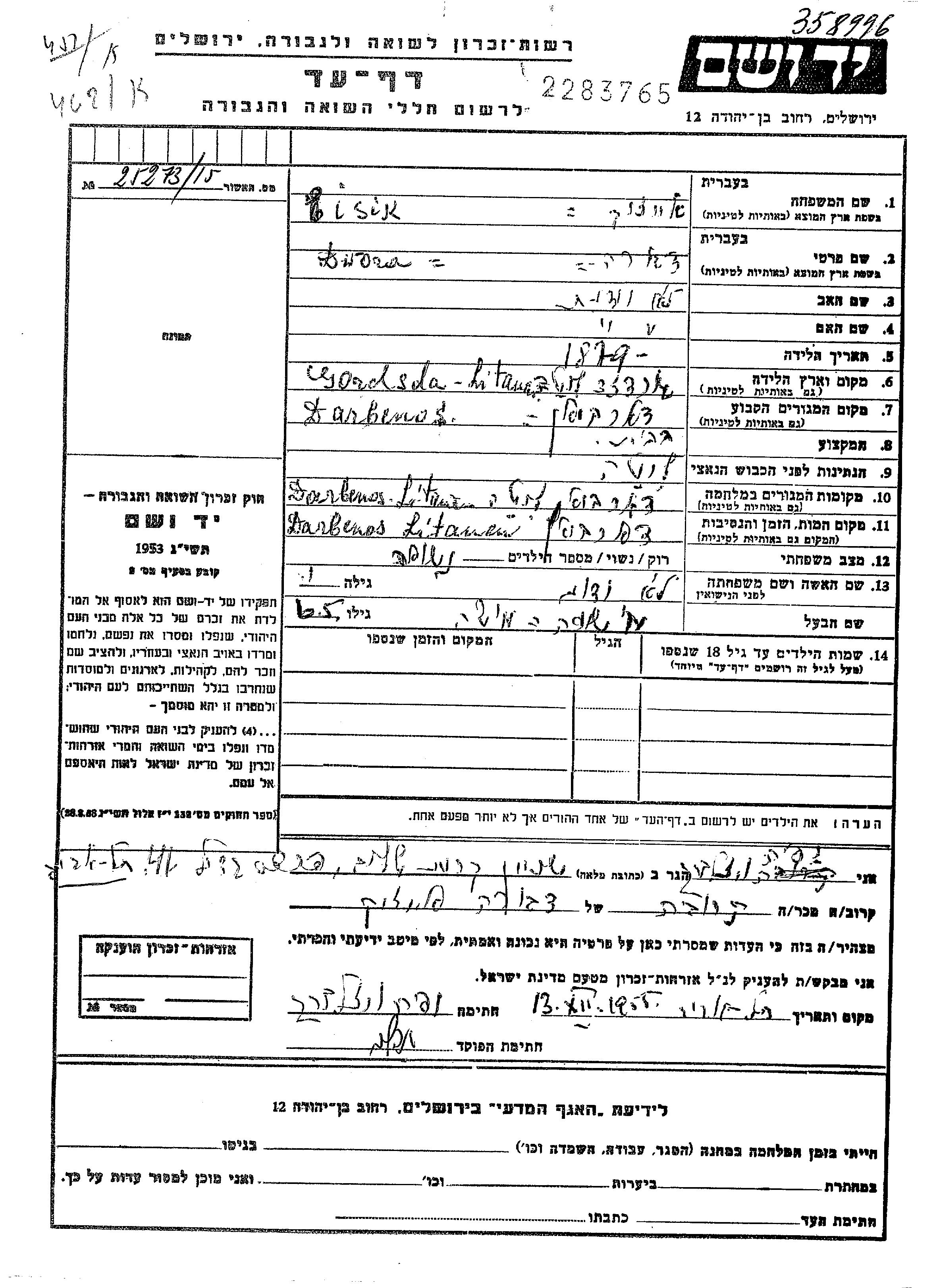 Dwora wurde in der Schoah ermordet. Todesort: Darbenai, Litauen.