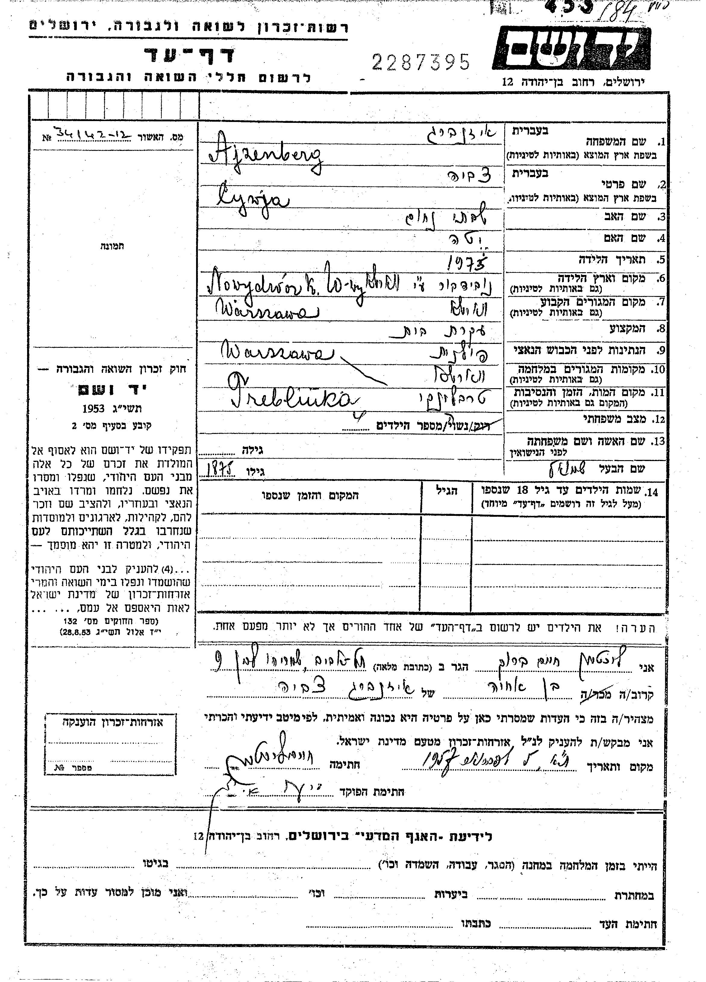 Cywja wurde in der Schoah ermordet. Todesort: Treblinka, Polen.