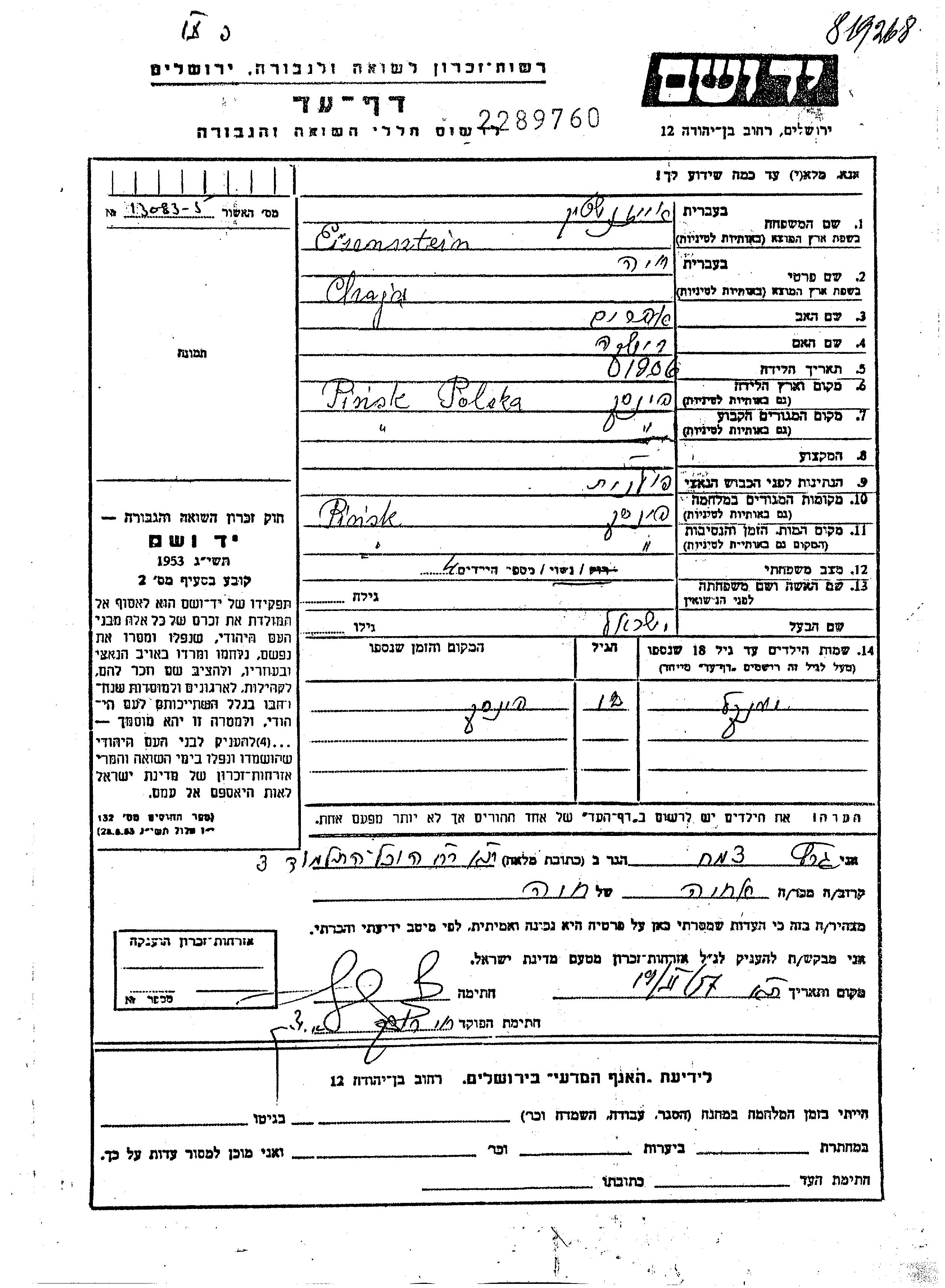 Yankl wurde in der Schoah ermordet. Todesort: Pinsk, Polen.