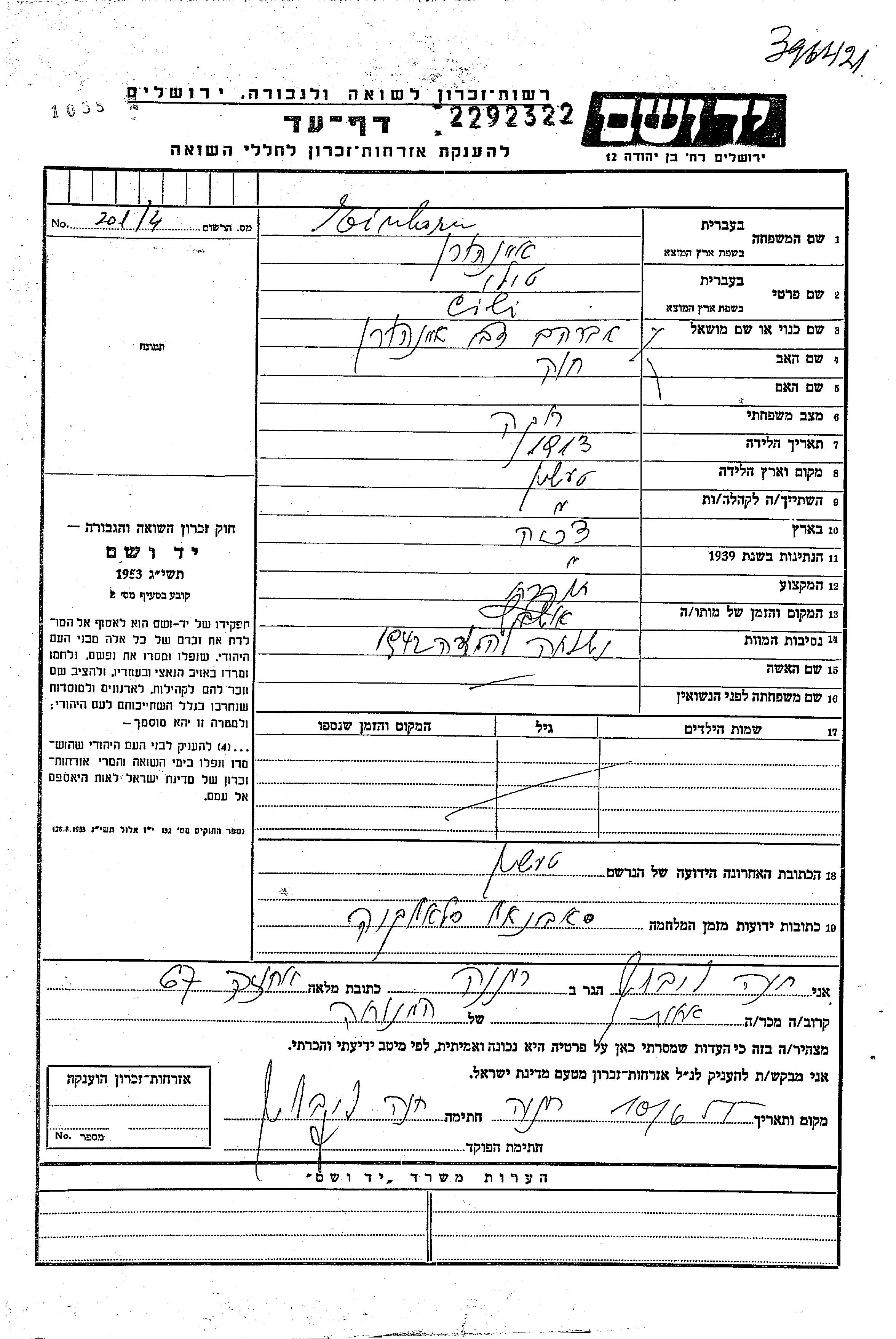 Cili Tila Tili wurde in der Schoah ermordet. Todesort: Auschwitz, Polen im Jahr 1942.