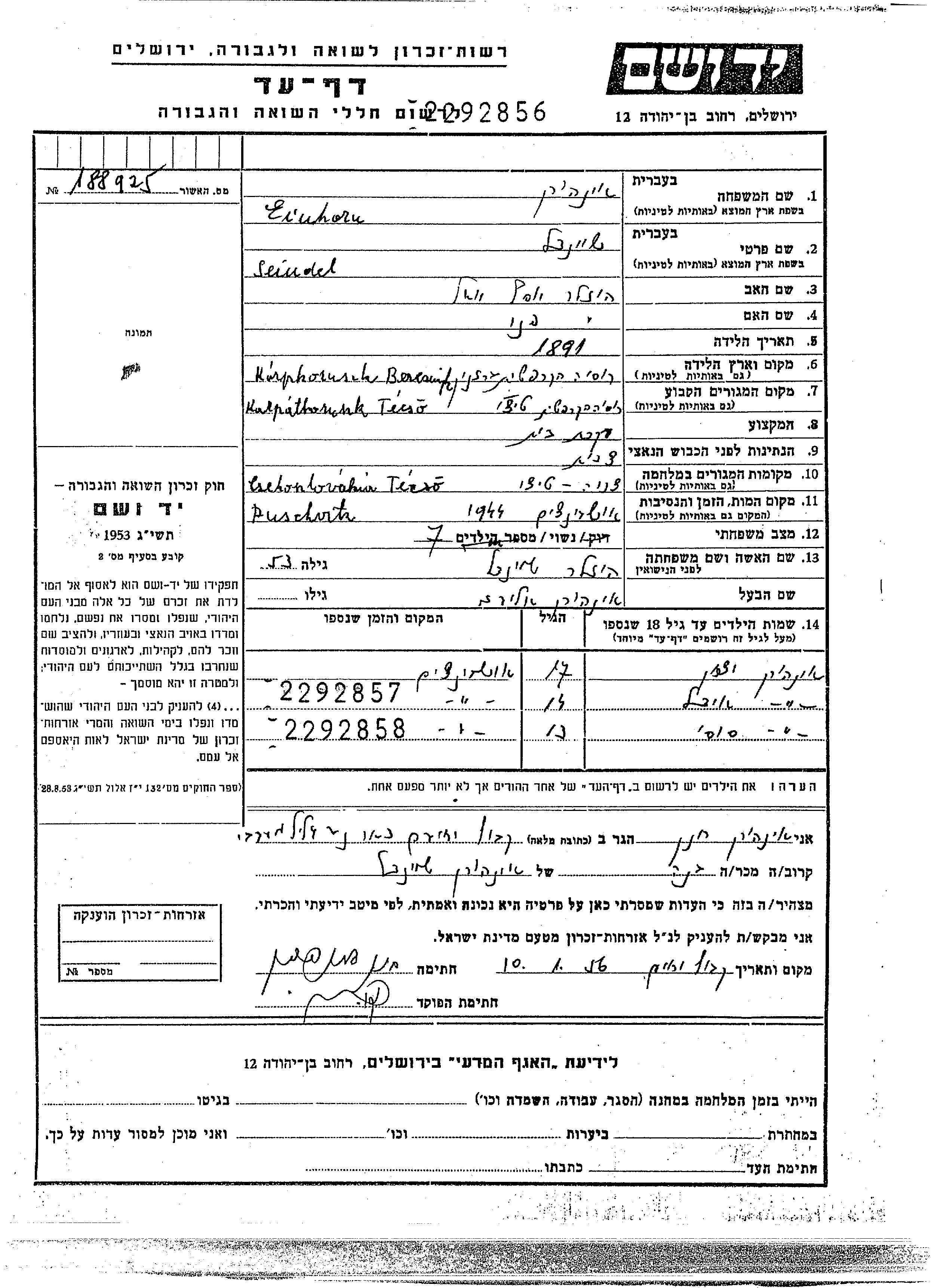 Ytzkhak wurde in der Schoah ermordet. Todesort: Auschwitz, Polen im Jahr 1944.