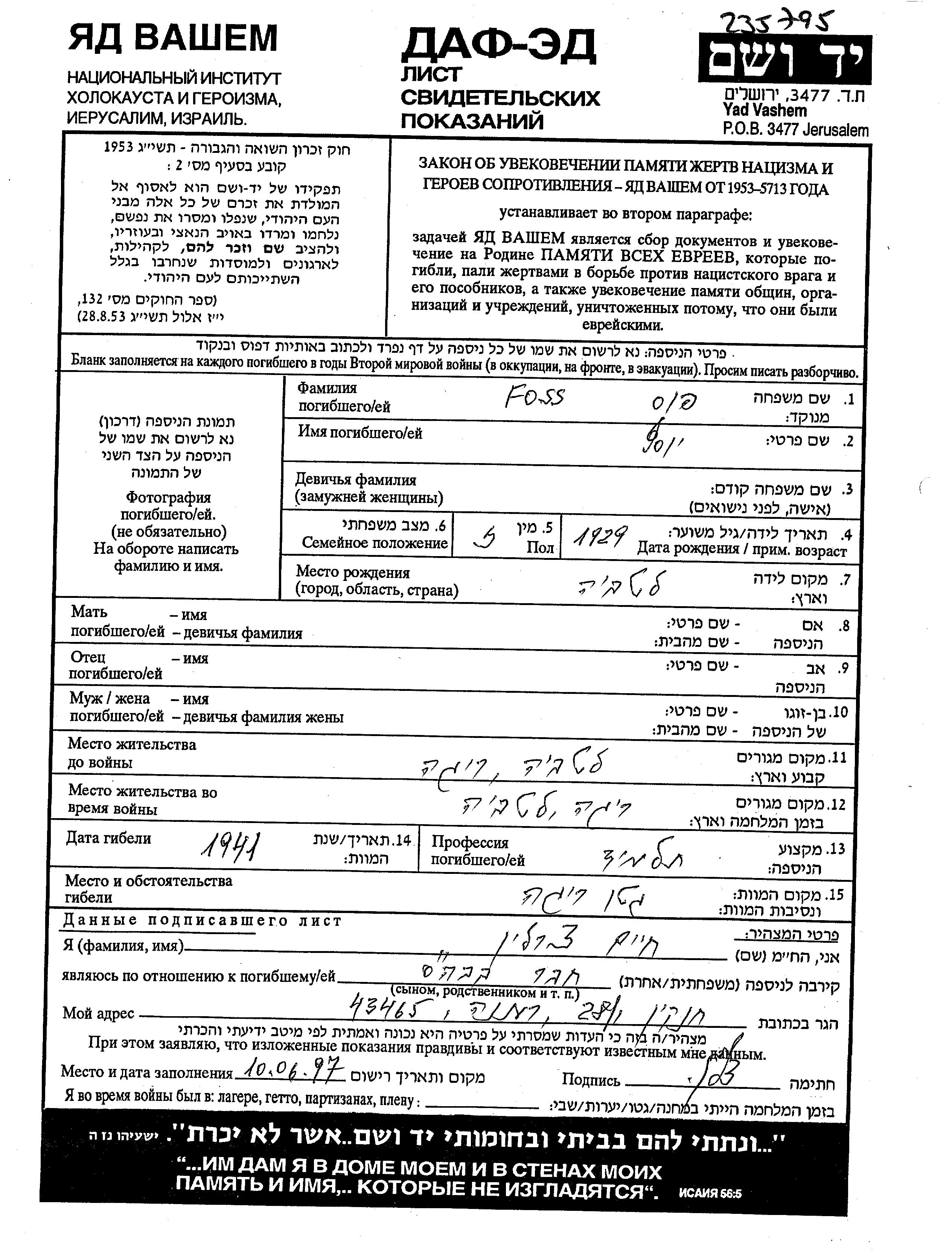 Yosef wurde in der Schoah ermordet. Todesort: Riga, Lettland im Jahr 1941.