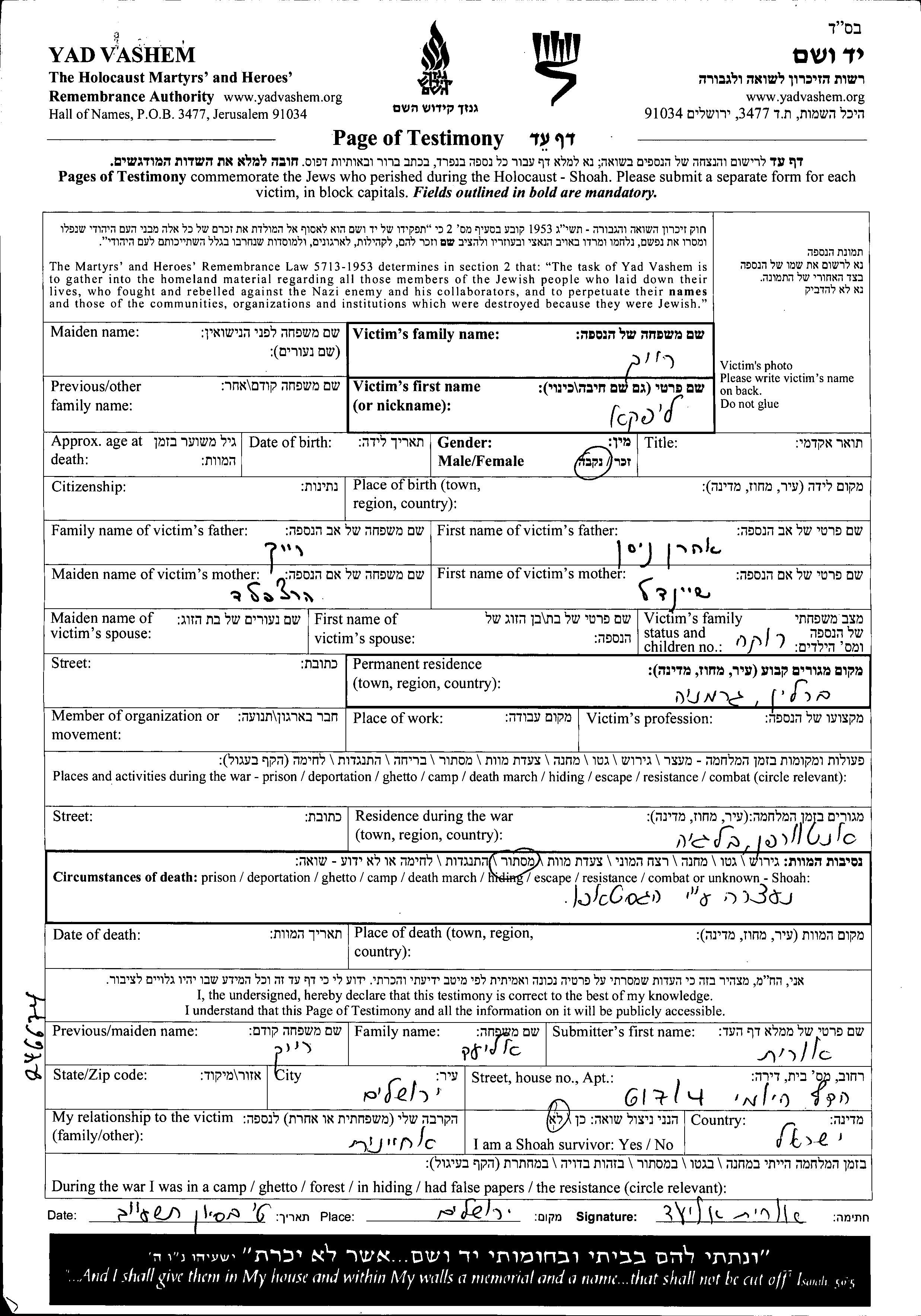 Lipka Reikh wurde Sie war die Tochter von Aharon Nisan und Sheindl, geb. Hertzfeld. Sie war Ledig. Vor dem Zweiten Weltkrieg lebte sie in Berlin, Deutsches Reich. Während des Krieges war sie in Antwerpen, Belgien.