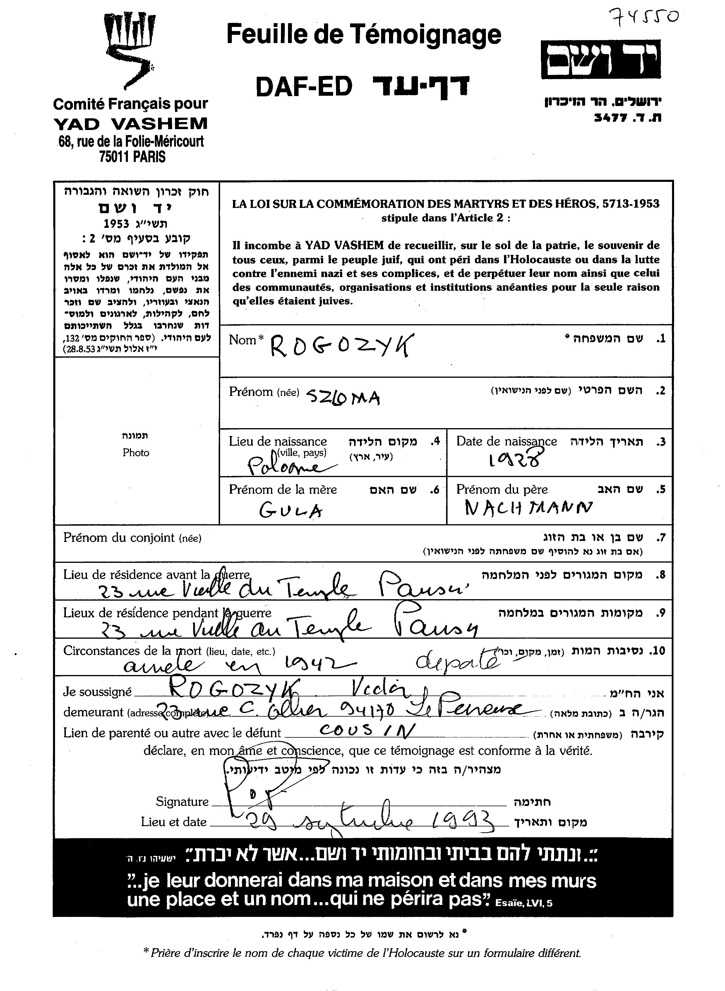Szloma Rogozyk wurde im Jahr 1928 in Polen geboren. Er war der Sohn von Nachmann und Gula Giula. Er war Kind. Vor dem Zweiten Weltkrieg lebte er in Polen. Während des Krieges war er in Polen.