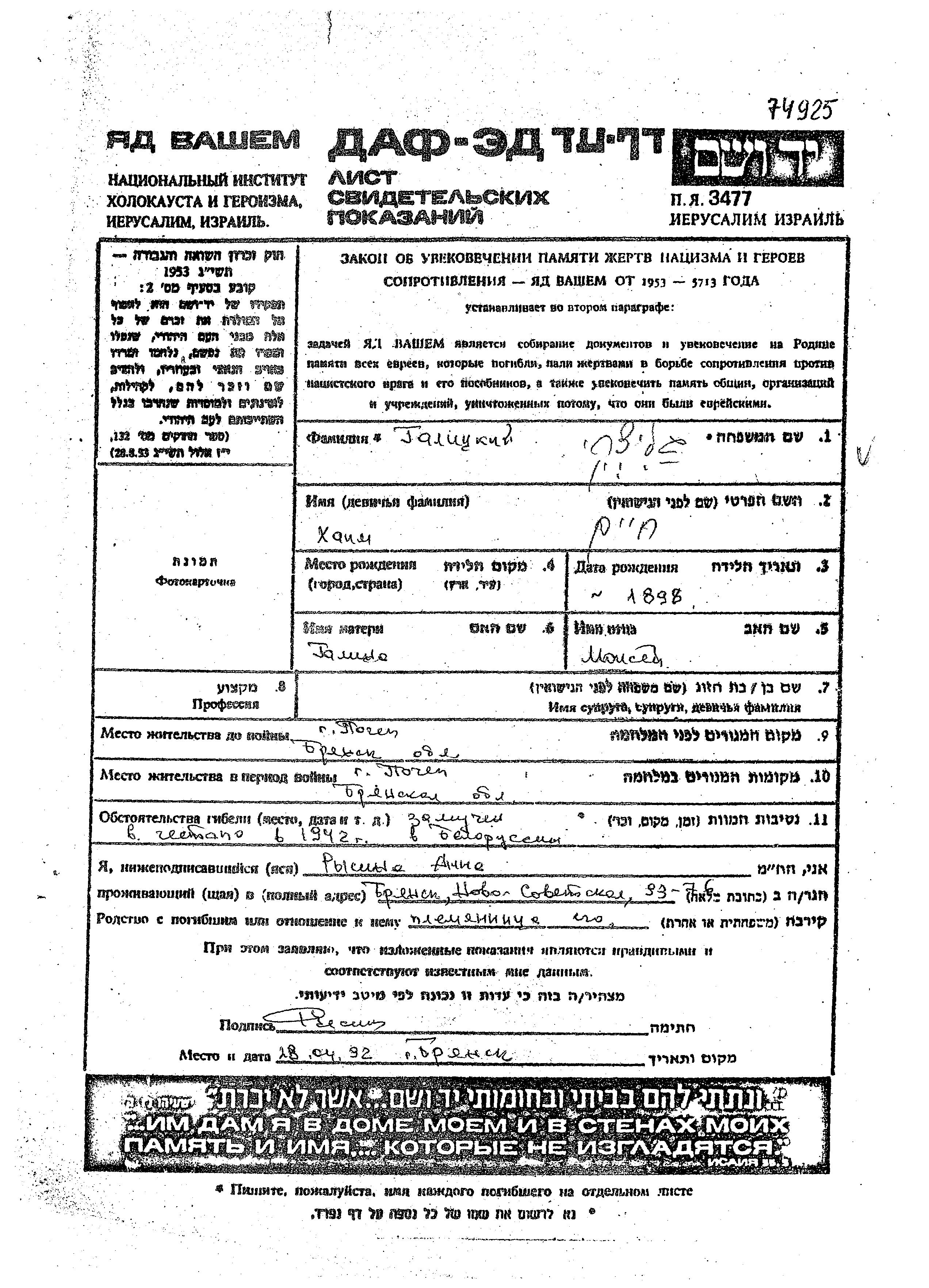 Khaim wurde in der Schoah ermordet. Todesort: Weißrussland (UdSSR) im Jahr 1942.
