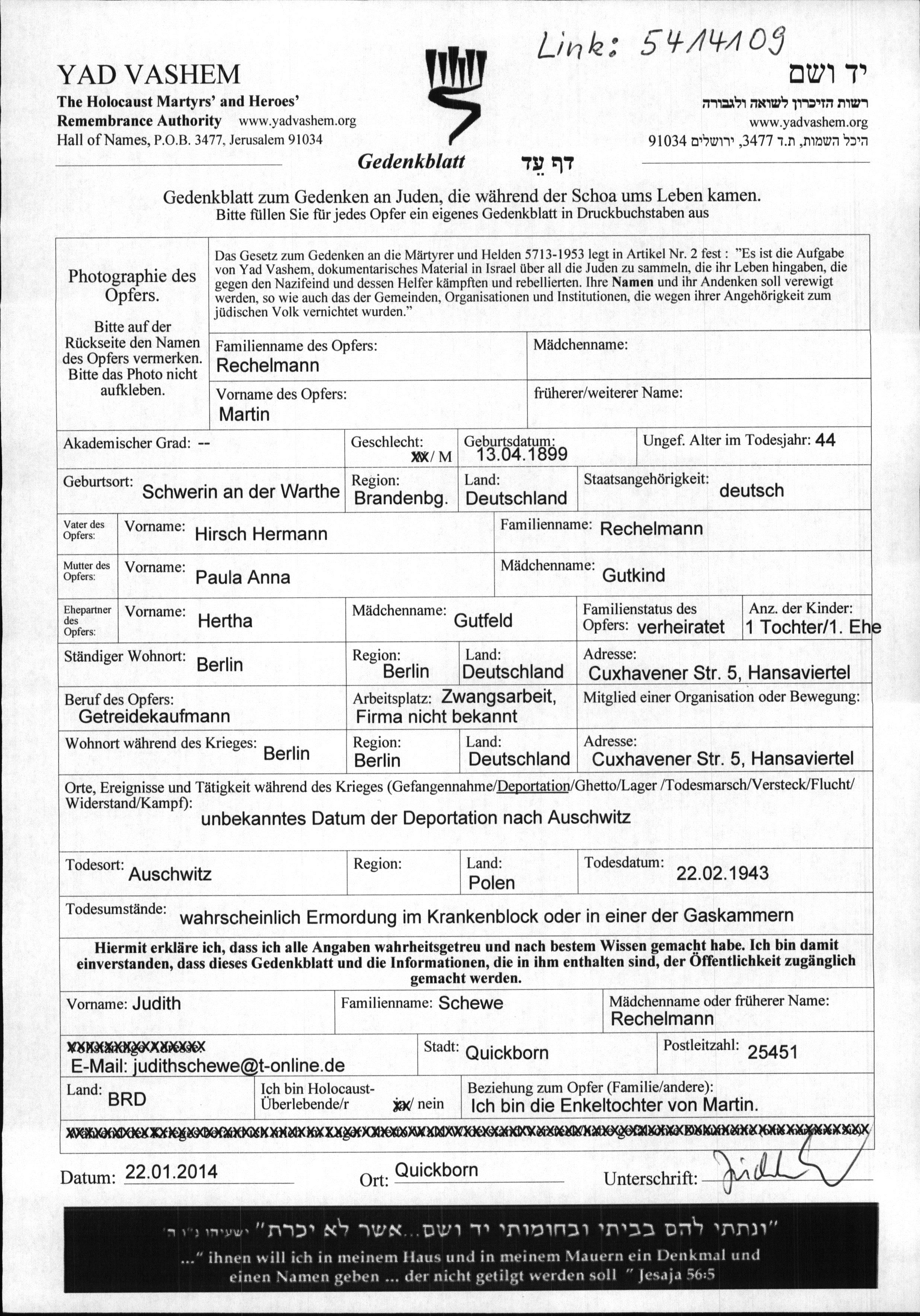 Rechelmann Martin 1899 Berlin, Deutsches Reich Liste von ermordeten Juden aus Deutschland