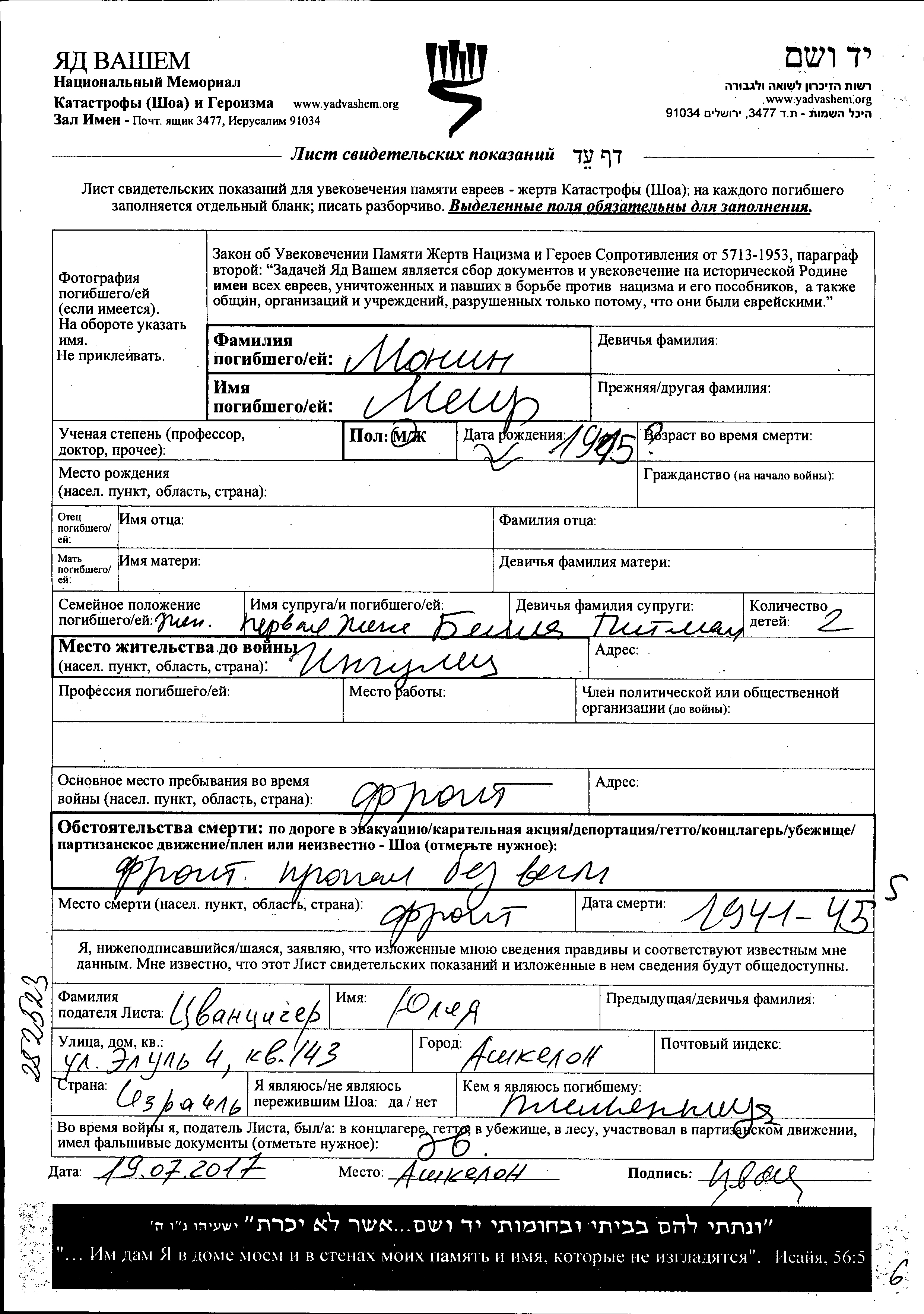 Juden wurden in der Schoah auf verschiedenste Weisen ermordet, unter anderem: Vergasen, Erschiessen, lebendig verbrannt werden, lebendig begraben werden, Tod durch Erschöpfung durch Zwangsarbeit, Epidemien, mangels jeder hygienischer Bedingung oder dem Fehlen medizinischer Versorgung. Manche Juden nahmen sich das Leben, um der Festnahme und weiterer Verfolgung zu entgehen oder ihr hoffnungsloses, nicht nachlassendes Leiden zu beenden. Zehntausende jüdische Soldaten der sowjetischen Armee, die als Kriegsgefangene gefangen genommen wurden, wurden als Juden selektiert und ermordet. Viele wurden als „vermisst“ registriert.