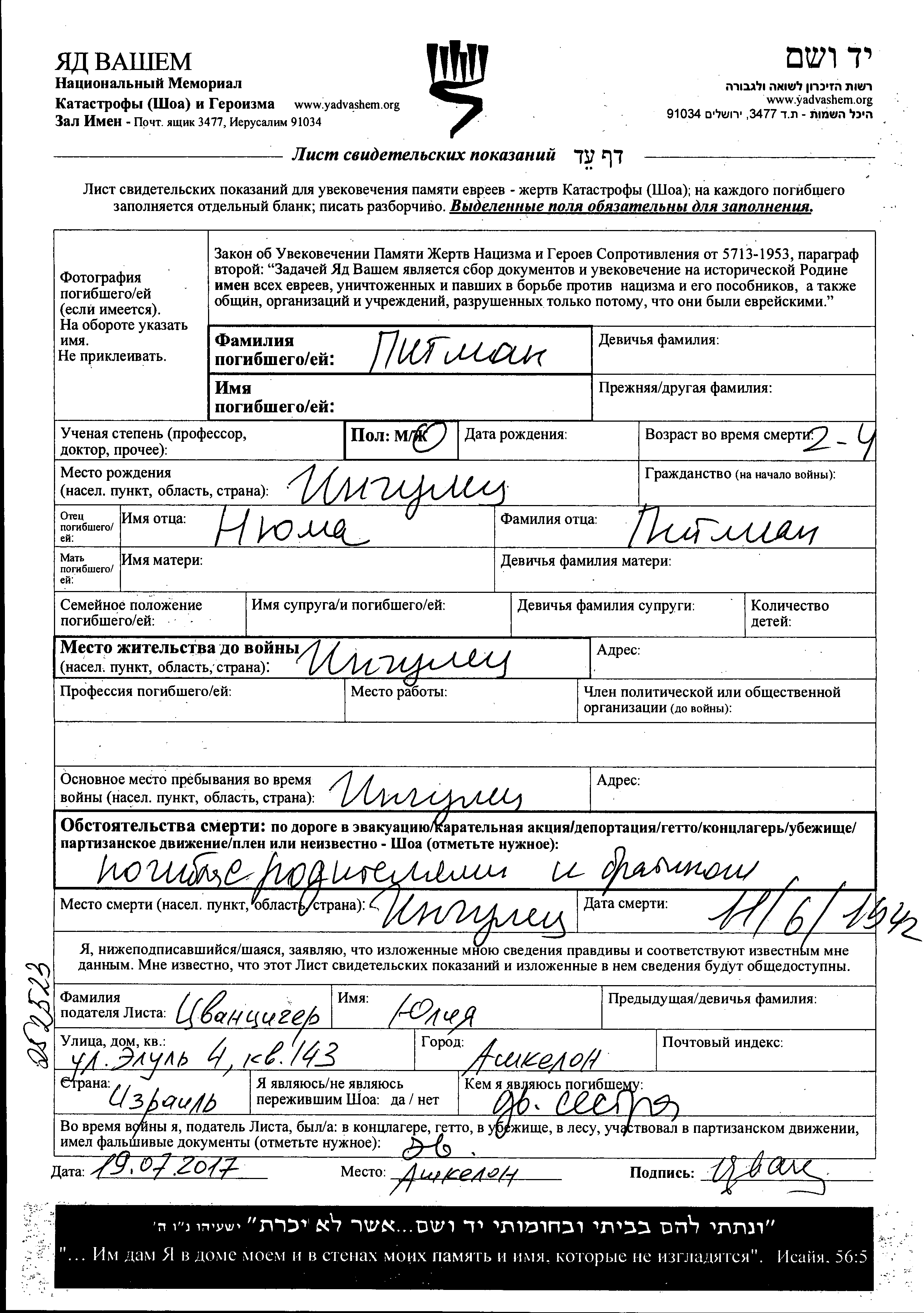 Juden wurden in der Schoah auf verschiedenste Weisen ermordet, unter anderem: Vergasen, Erschiessen, lebendig verbrannt werden, lebendig begraben werden, Tod durch Erschöpfung durch Zwangsarbeit, Epidemien, mangels jeder hygienischer Bedingung oder dem Fehlen medizinischer Versorgung. Manche Juden nahmen sich das Leben, um der Festnahme und weiterer Verfolgung zu entgehen oder ihr hoffnungsloses, nicht nachlassendes Leiden zu beenden. Zehntausende jüdische Soldaten der sowjetischen Armee, die als Kriegsgefangene gefangen genommen wurden, wurden als Juden selektiert und ermordet. Viele wurden als „vermisst“ registriert.