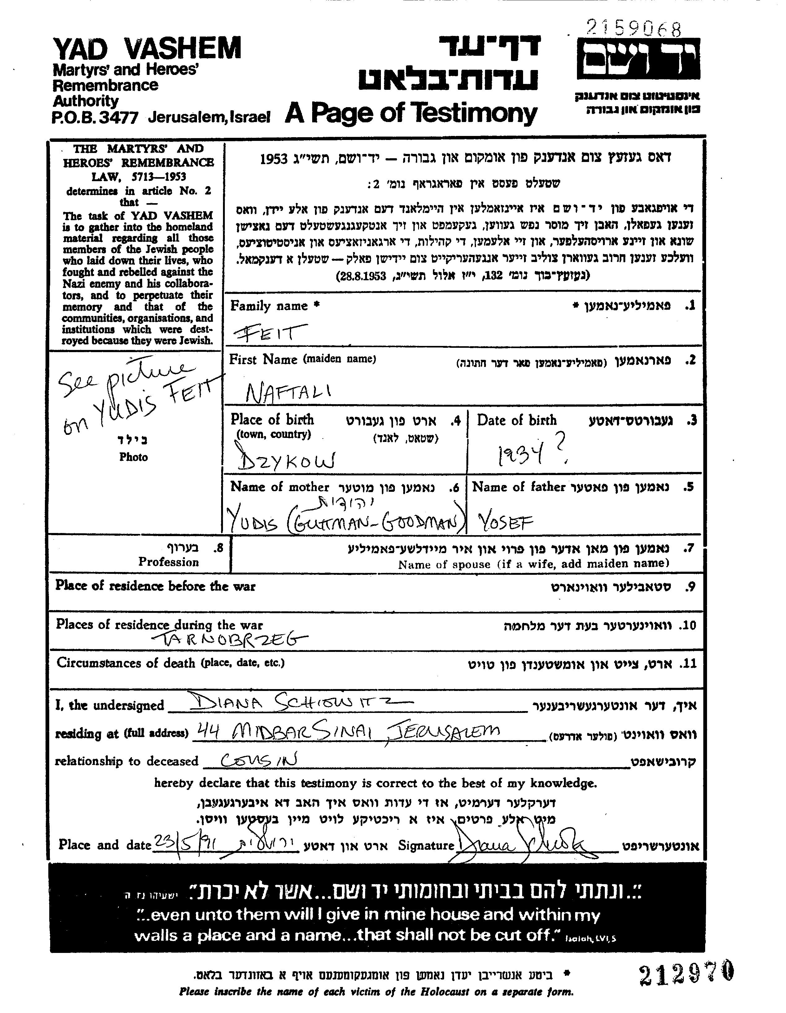 Feit | Naftali | 1934 | Dzikow, Polen | Photos |