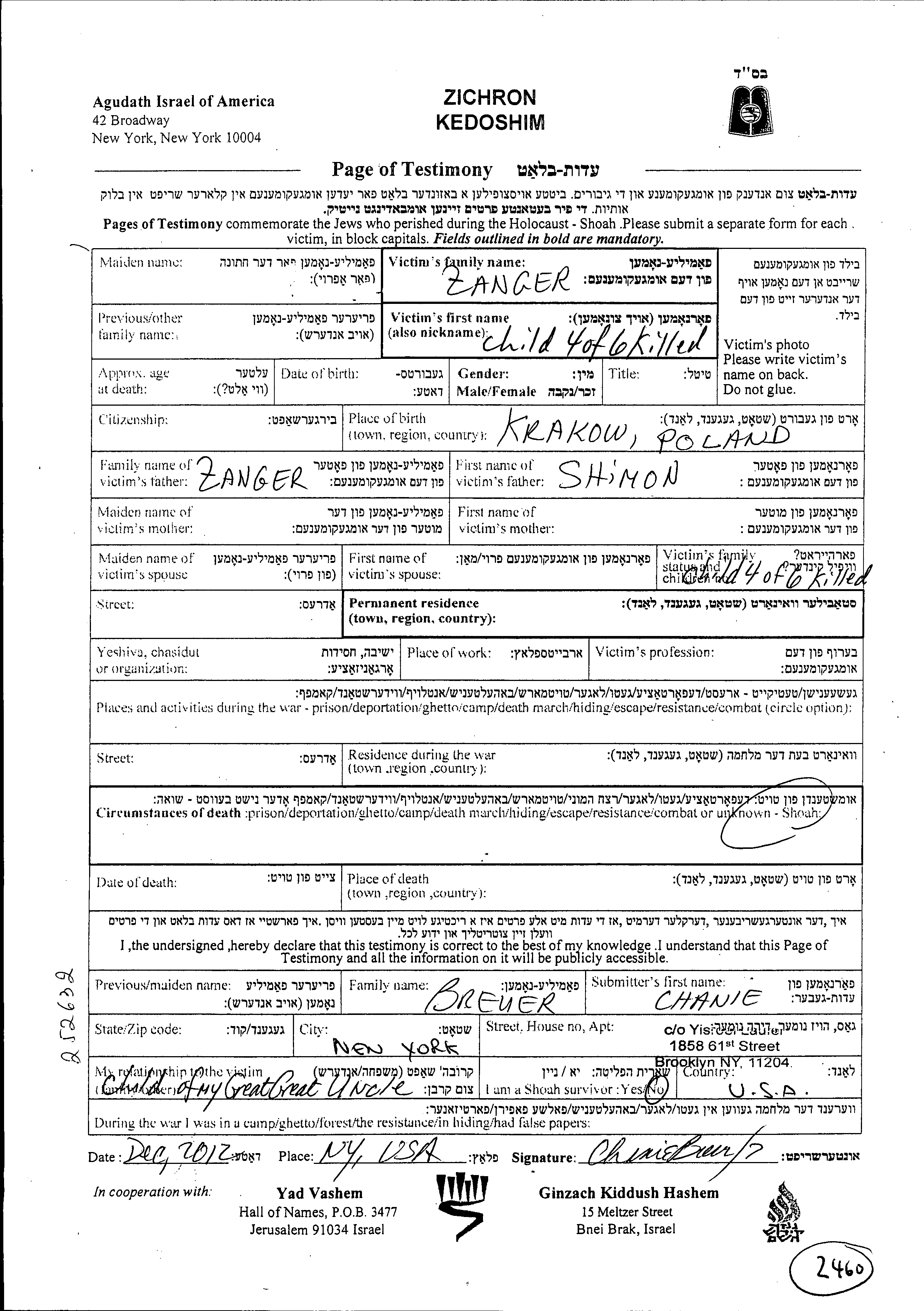 Vorname unbekannt Zanger wurde in Krakow, Polen geboren. Er/sie war der/ die Sohn/Tochter von Шимон. Er/Sie war Kind.