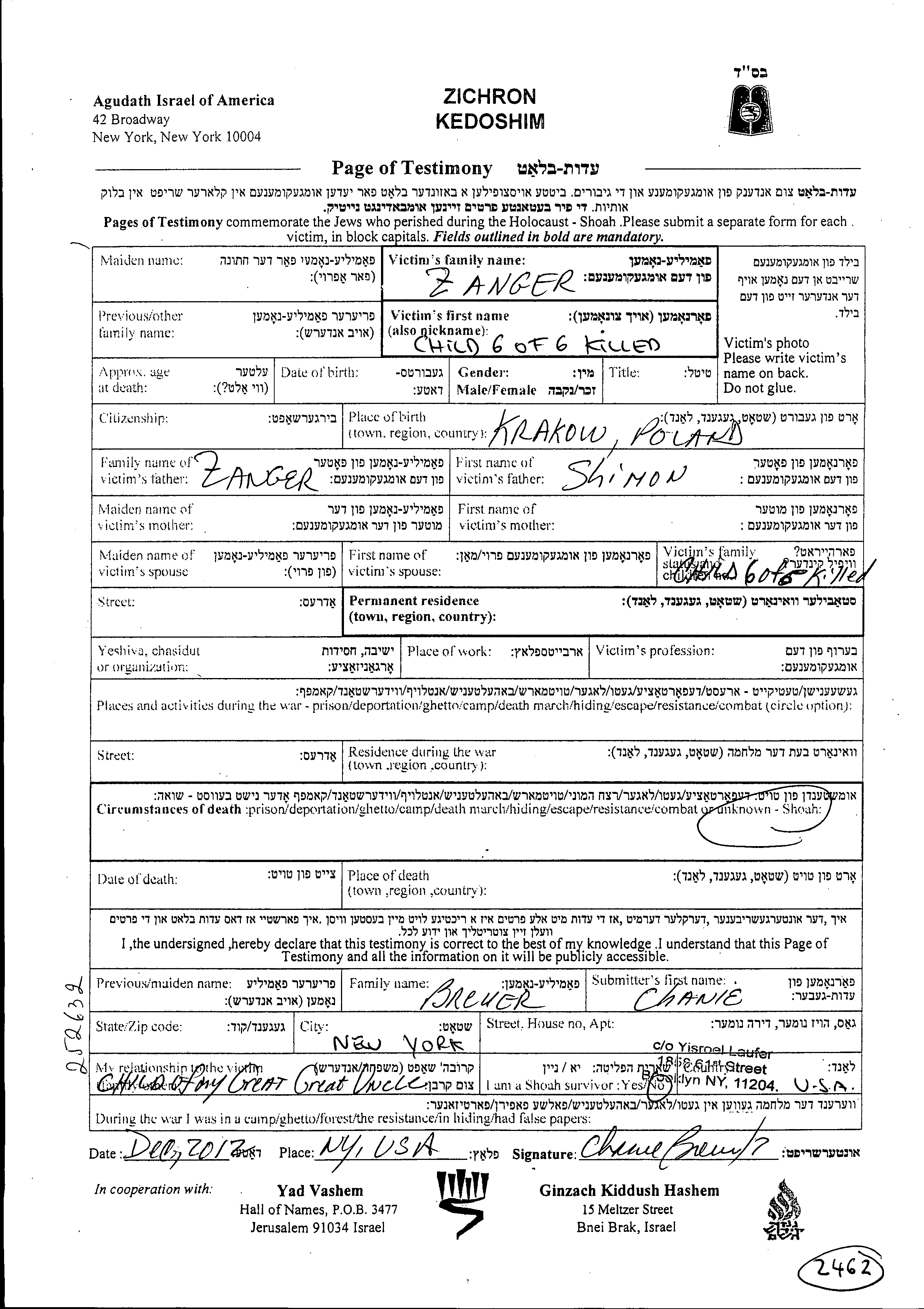 Vorname unbekannt Zanger wurde in Krakow, Polen geboren. Er/sie war der/ die Sohn/Tochter von Шимон. Er/Sie war Kind.