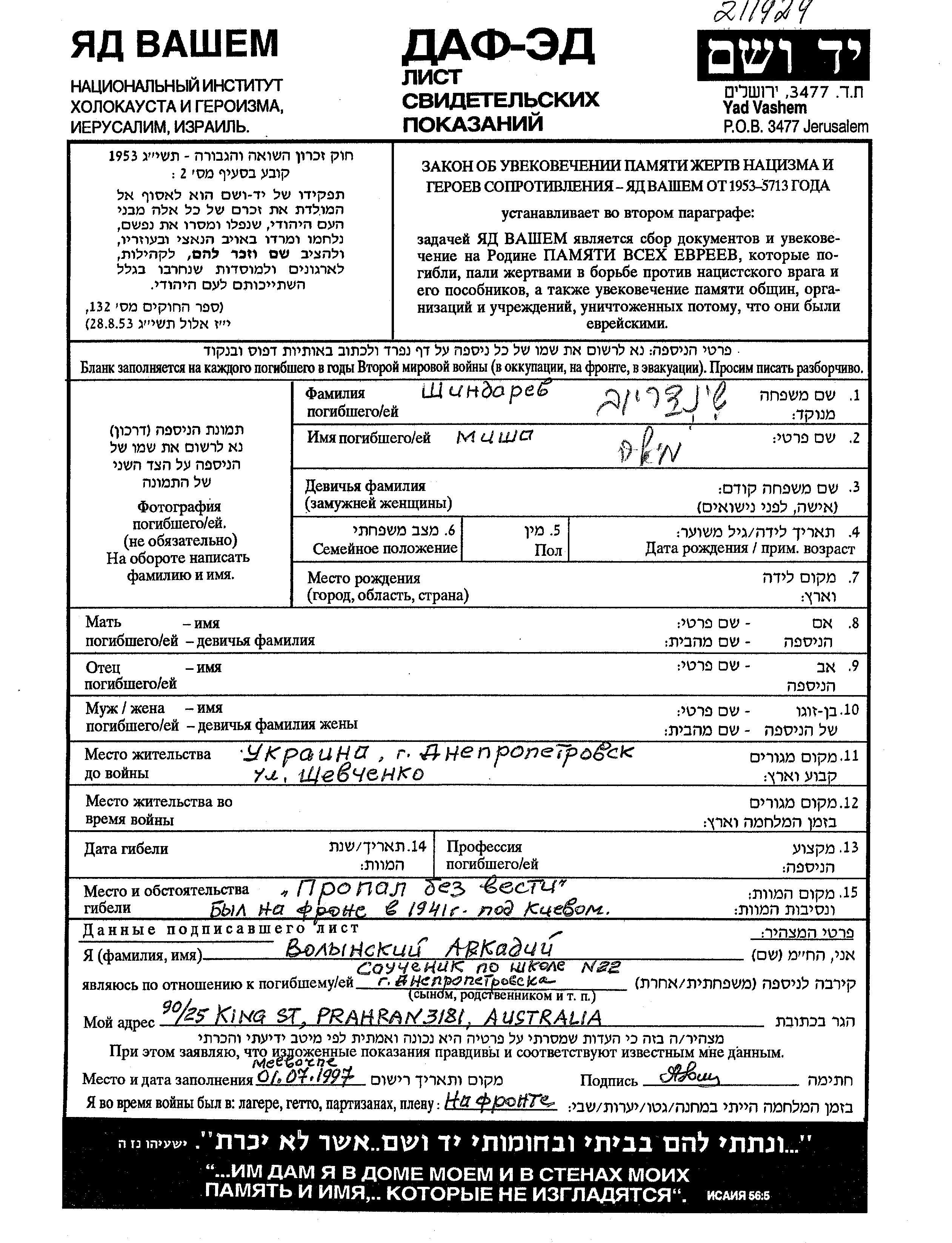 Misha Shindarev. Vor dem Zweiten Weltkrieg lebte er in Dnepropetrovsk, Ukraine (UdSSR).