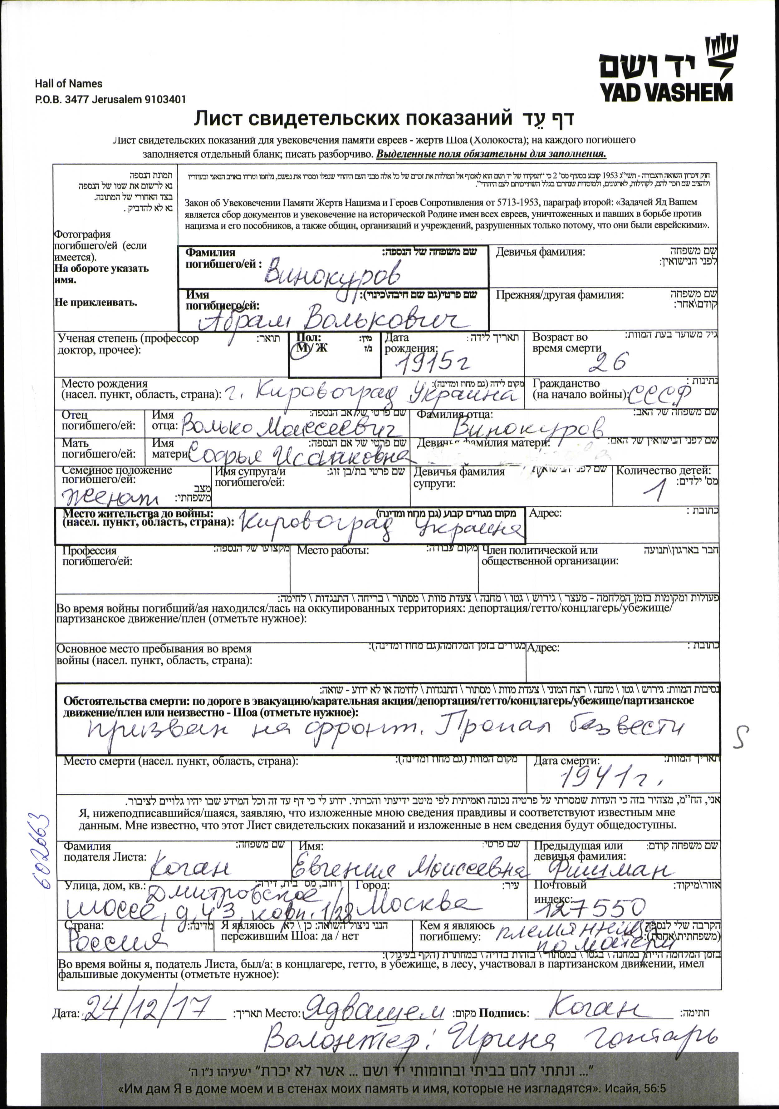 Abram wurde in der Schoah ermordet. Todesort: Sowjetunion im Jahr 1941.