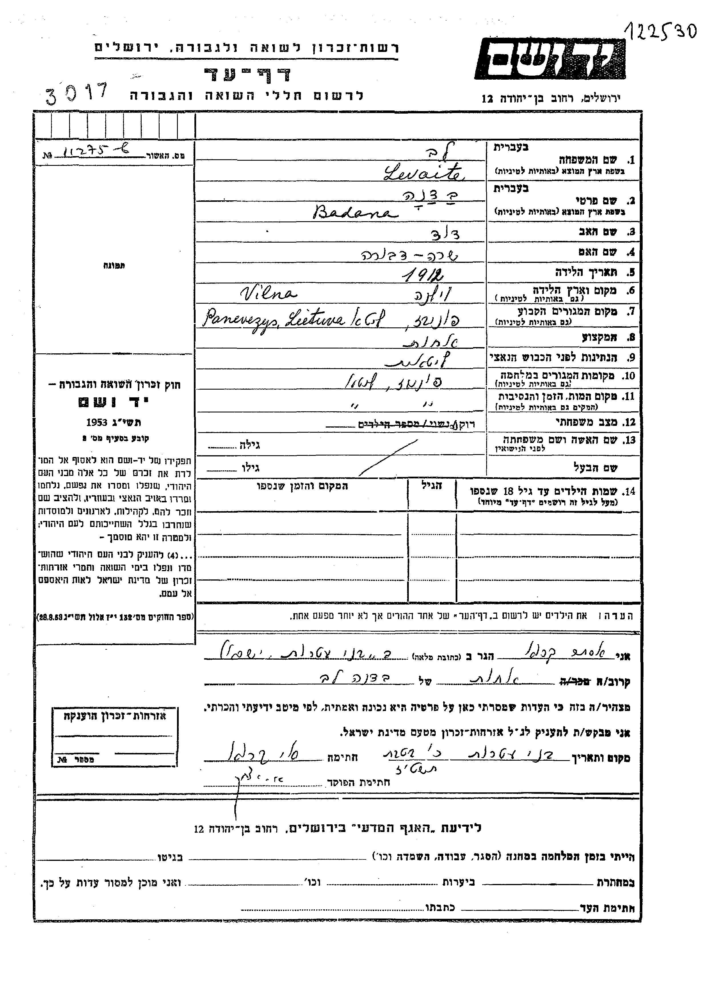 Lev | Badana | Ponivez, Litauen | Gedenkblatt | |